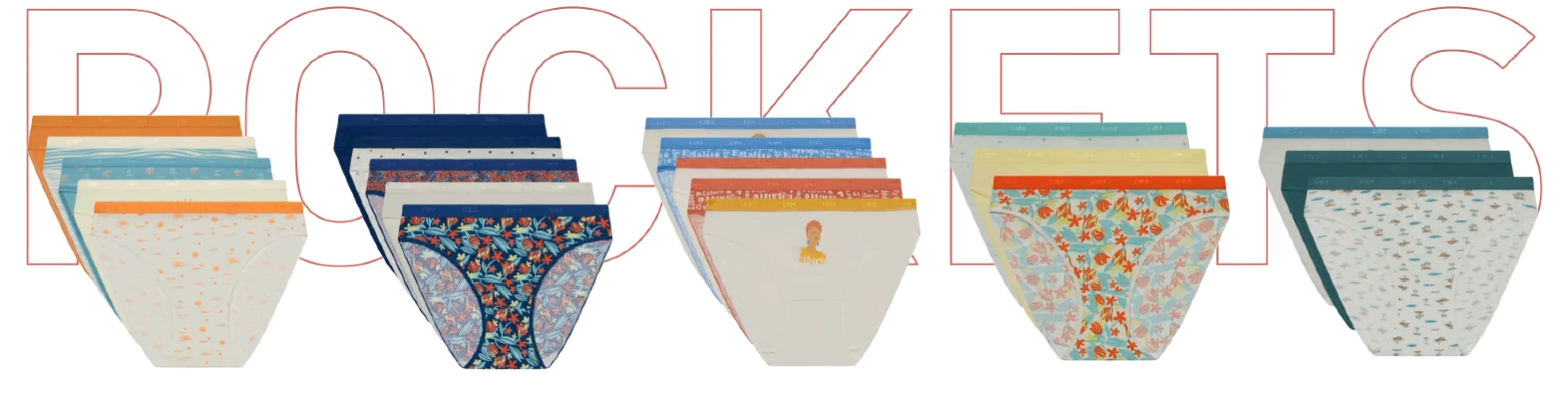 Sie werden in Sets von 2, 3 oder 5 Stück in wiederverwendbaren Taschen ab 15,99€ verkauft. Es gibt sie als Baumwollslip, Baumwoll-Boxershorts für Frauen und sogar als String oder Tanga!