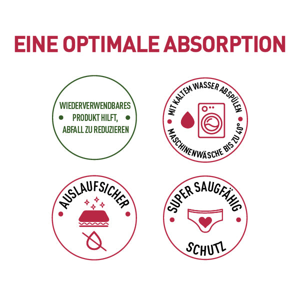 Um deine Periodenunterwäsche optimal zu pflegen, empfehlen wir, sie vor dem ersten Gebrauch einmal zu waschen. Nachdem du deine Unterwäsche verwendet hast, empfehlen wir, sie zunächst in kaltem Wasser zu spülen und dann per Hand oder bei 30° in der Maschine zu waschen. Das Trocknen an der Luft ist vorzuziehen, und wir raten vom Bügeln sowie von der Verwendung großer Mengen Weichspüler beim Waschen ab.