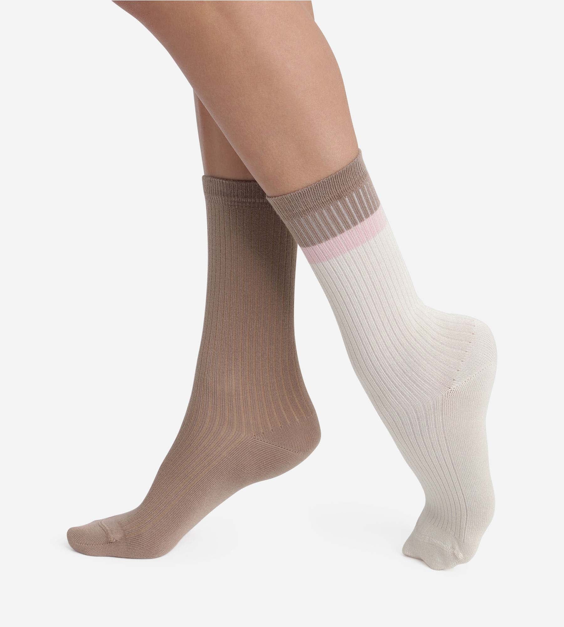 Mit seiner neutralen Farbpalette und den dezenten Farbblöcken setzt das 2er-Pack Damen-Baumwollsocken Taupe Ivoire Dim Modal auf ein klares Design und einfachen Tragekomfort.