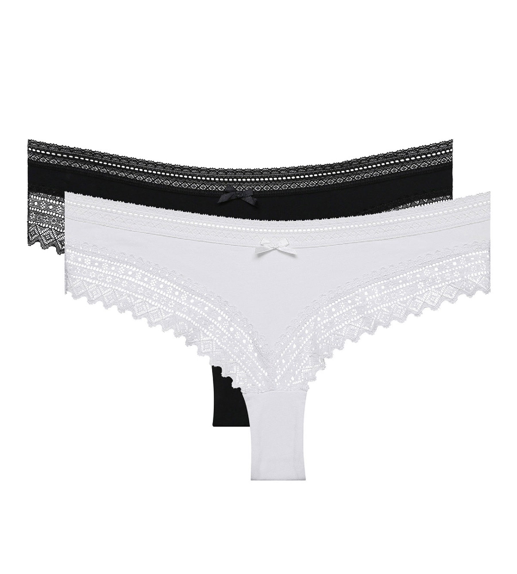 2er-Pack Hipster aus Baumwolle mit Spitze weiß/schwarz - Sexy Fashion