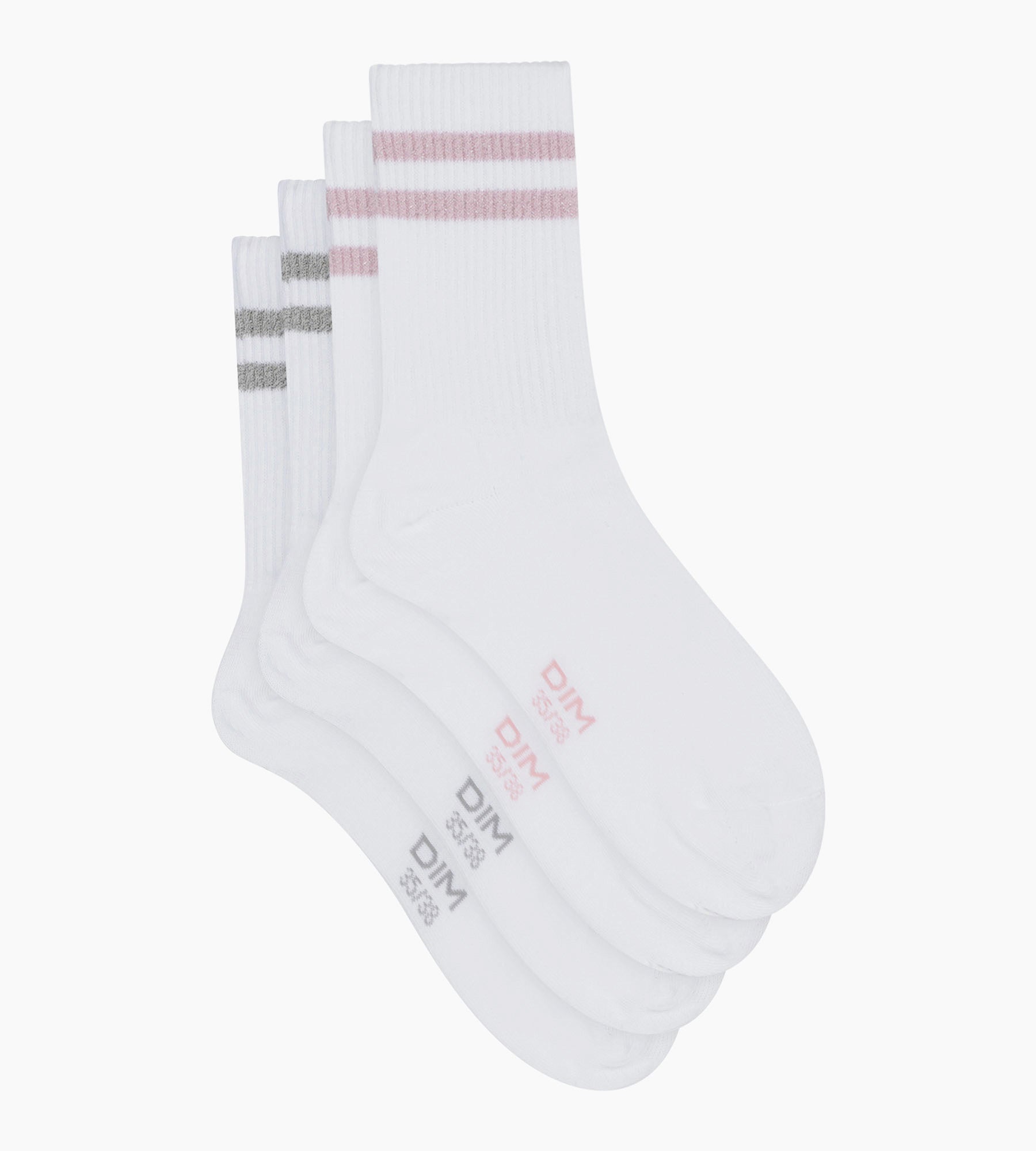 Mit ihrem sportlichen Look und dem glänzenden Touch interpretiert das 2er-Pack Damensocken aus weißer Baumwolle und rosa/silbernem Lurex von Dim Mode den Casual-Stil auf elegante Weise neu.