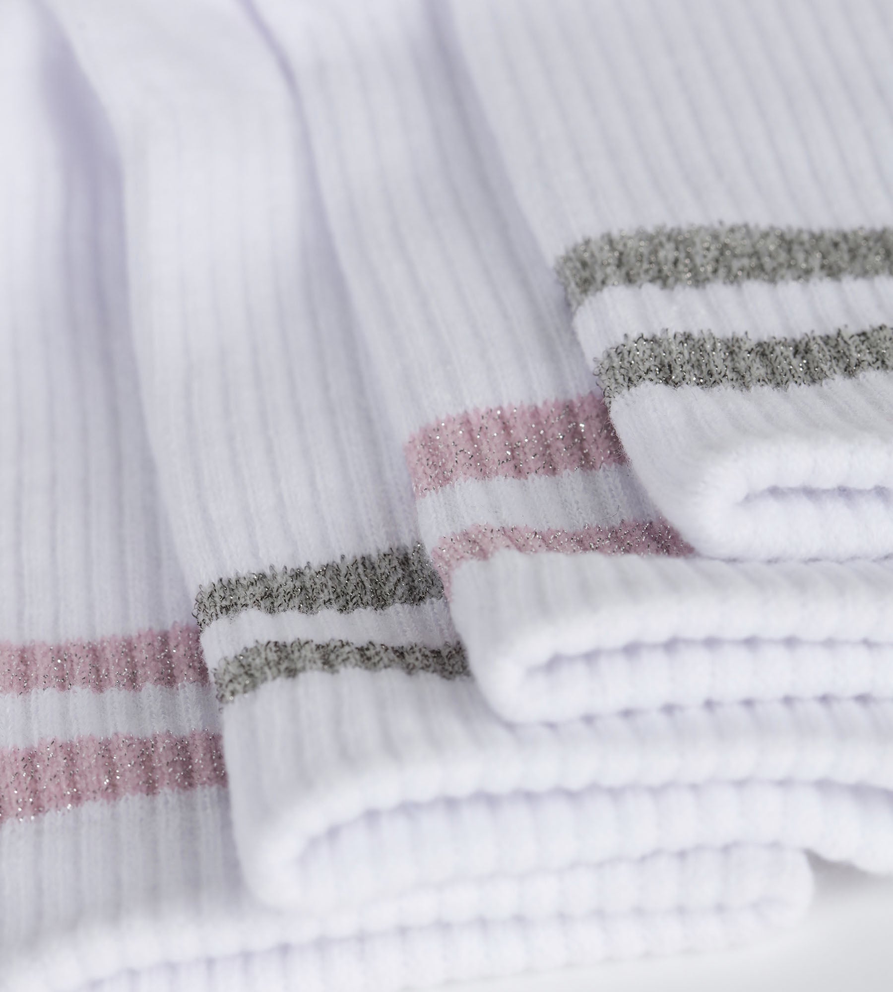 2er-Pack Socken aus gerippter Baumwolle in Weiß und Lurex in Rosa/Grau von Dim Mode