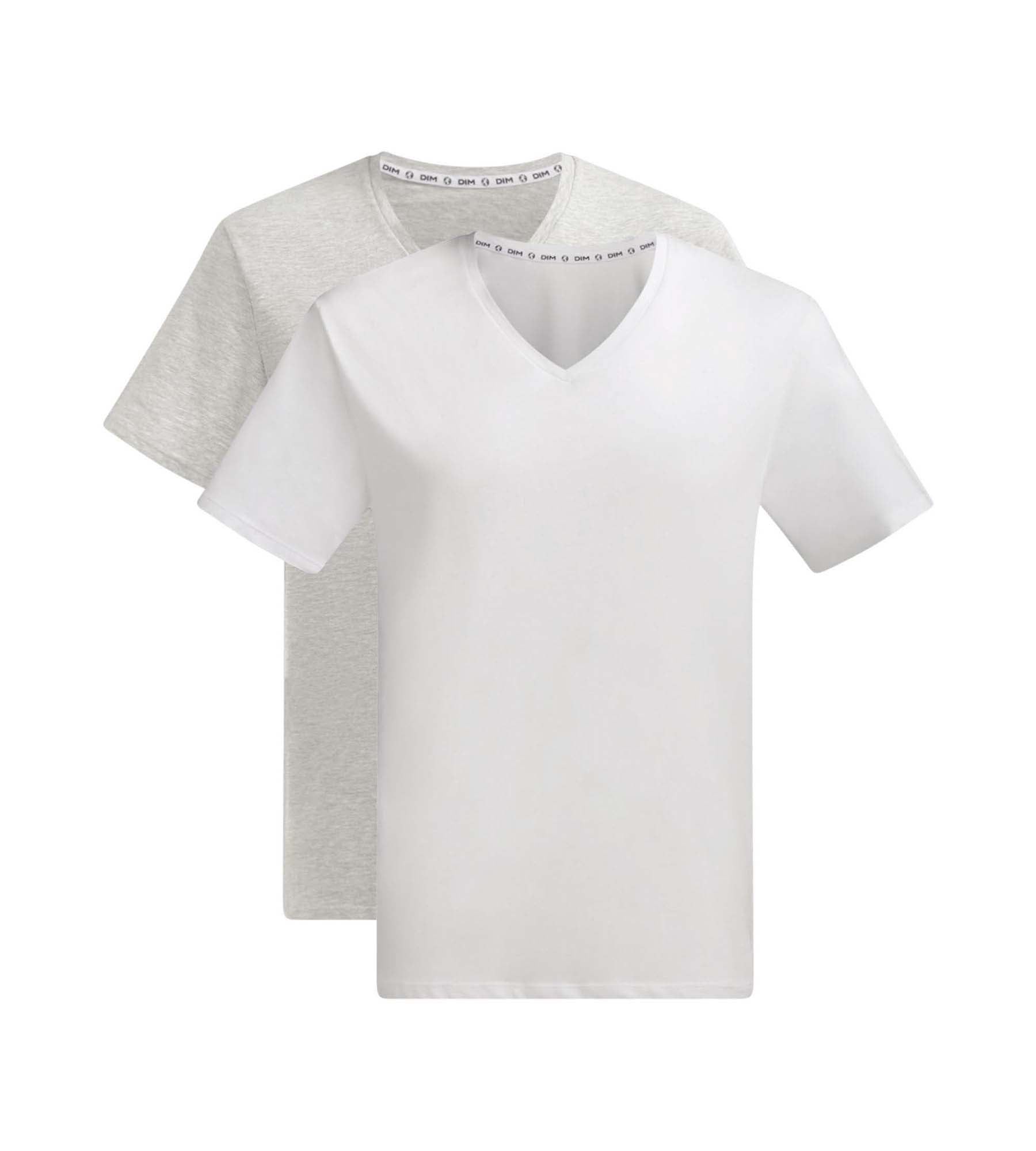 Zeigen Sie einen tadellosen Look mit dem Dim Good-Pack mit 2 weißen und grauen Herren-T-Shirts aus Bio-Baumwolle mit V-Ausschnitt!