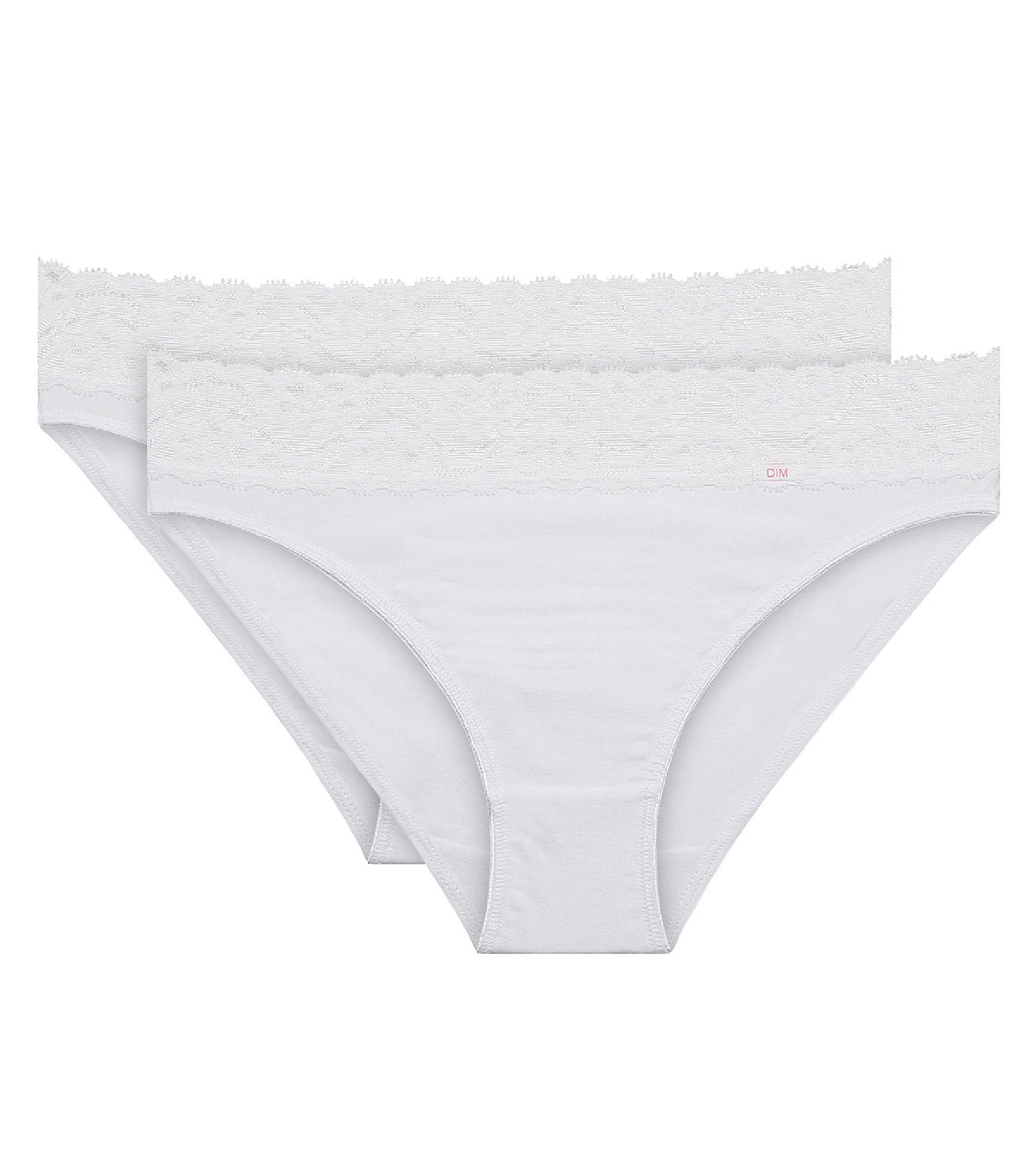 2er-Pack weiße Midi-Slips aus Stretch-Baumwolle mit Spitze - Cotton Plus