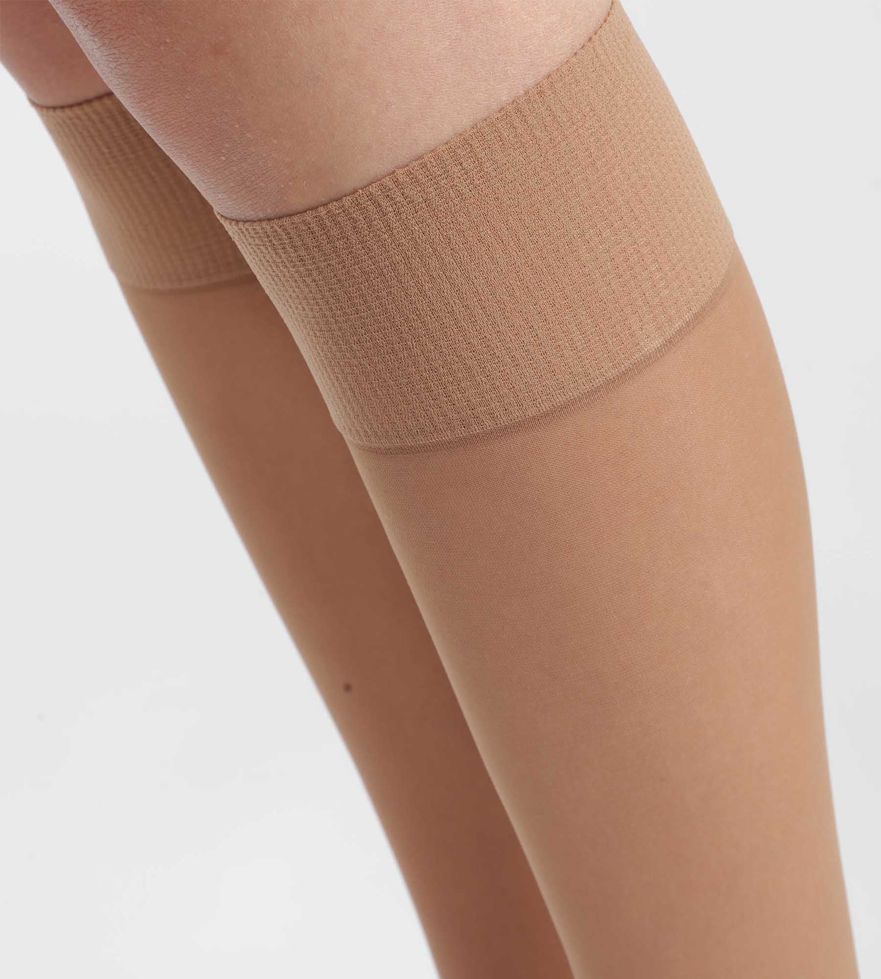 Die hohe Qualität und tolle Optik unserer zimtfarbenen, semi-transparenten Damenkniestrümpfe wird Dich sofort überzeugen, ebenso wie die verantwortungsvolle Herstellungsweise mit recycelten Fasern. So anziehend kann Umweltschutz sein!