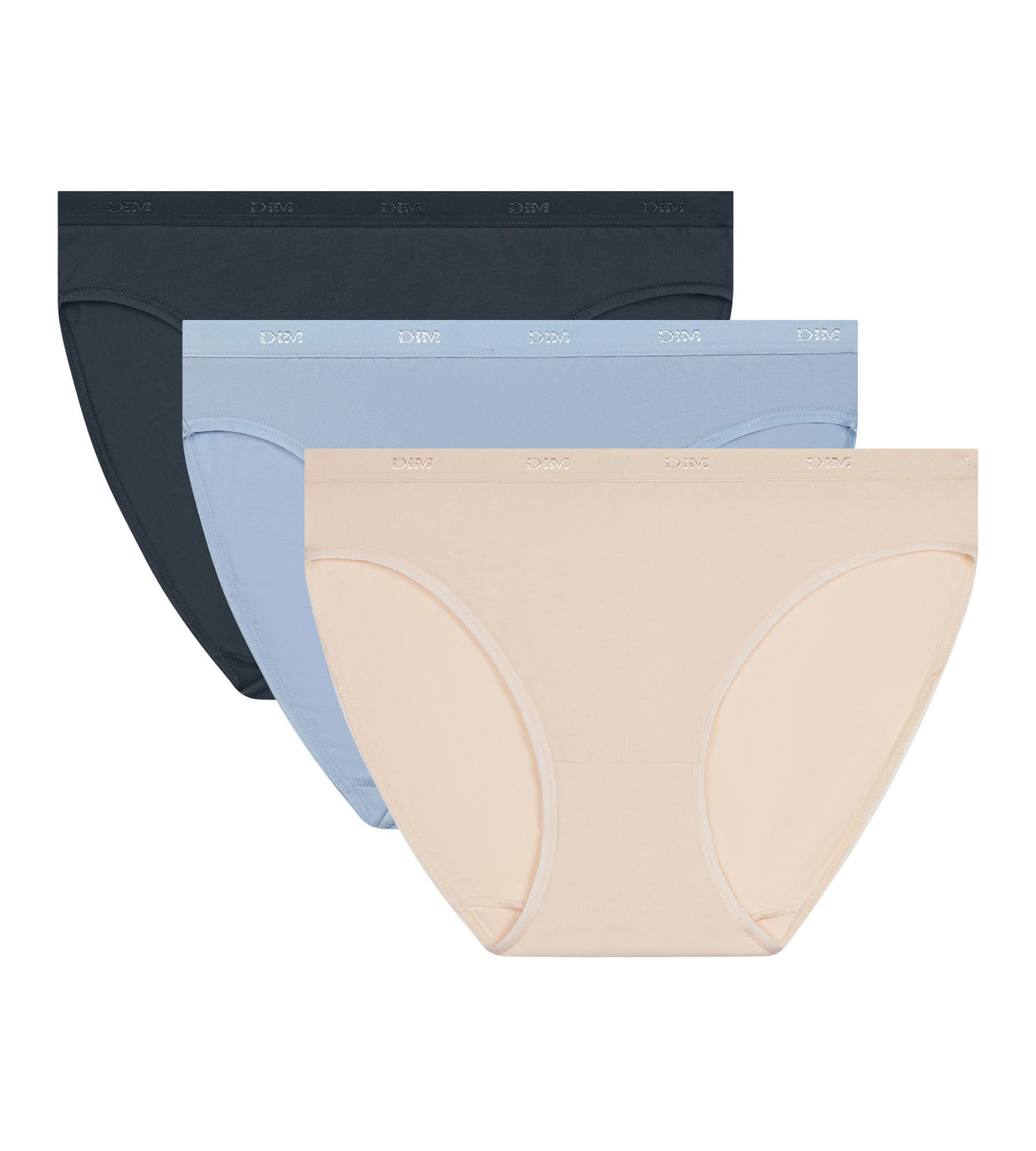 Um mühelos schlicht und stilvoll zu sein, setz auf das 3er-Pack Damen-Slips aus Stretch-Baumwolle Les Pockets Ecodim Blau, Grau, Beige!