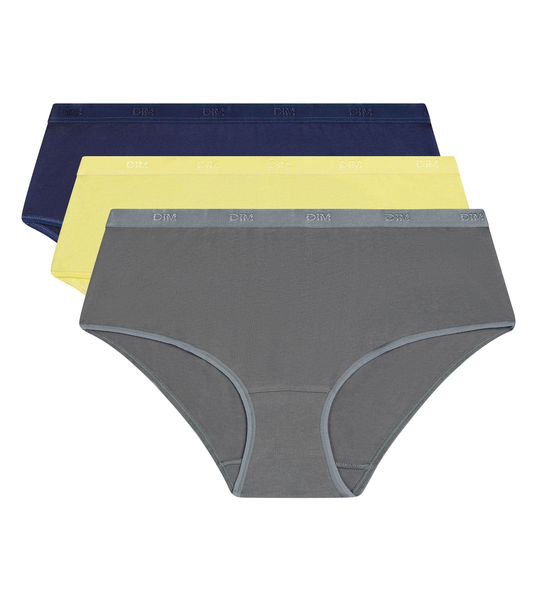 Bring ein bisschen Frische in deine Basics mit dem 3er-Pack Damen-Boxershorts Les Pockets Ecodim aus Stretch-Baumwolle in Grau-, Gelb- und Blautönen.