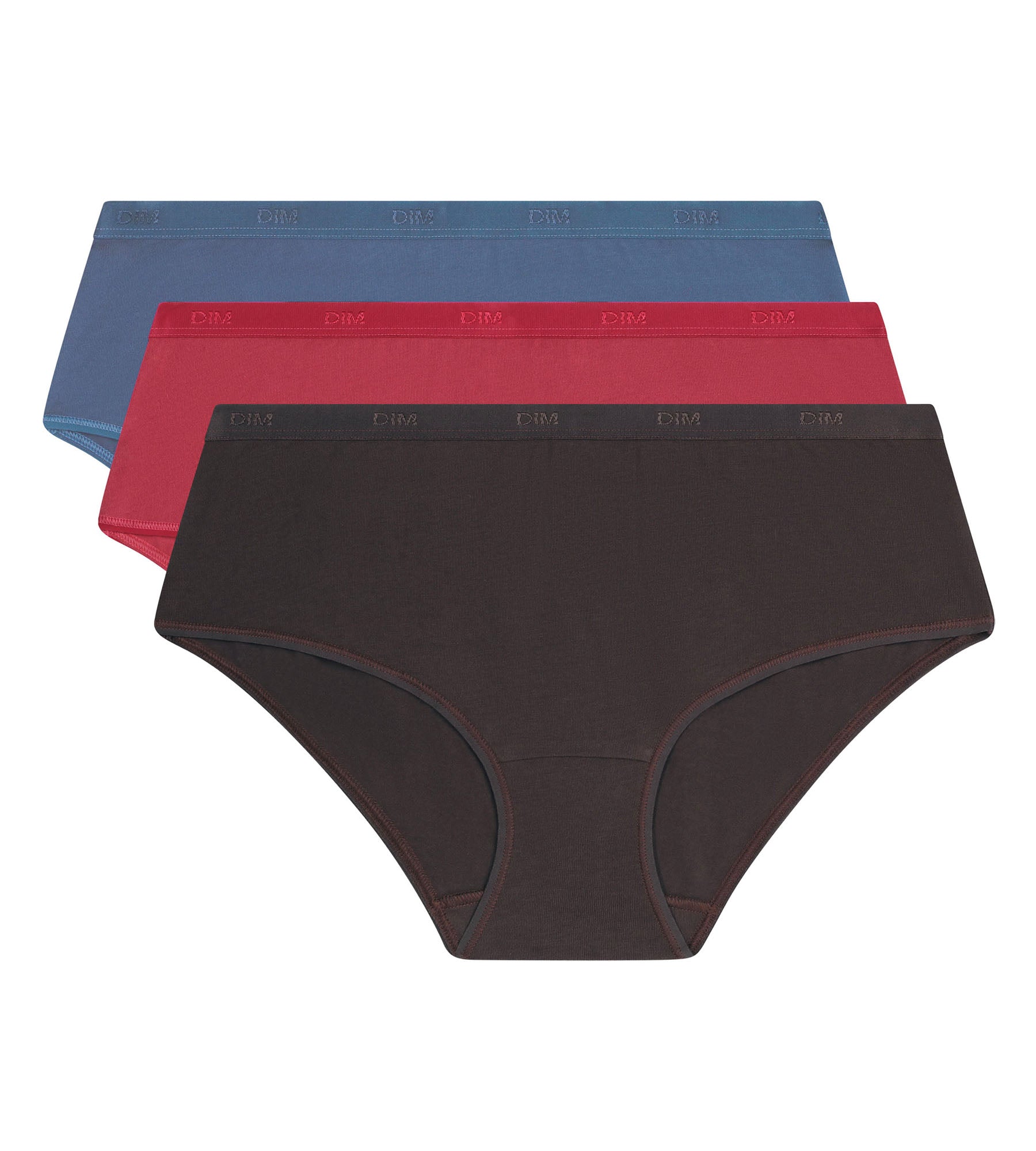 Zeig deinen starken Stil mit dem 3er-Pack Damen-Boxershorts Les Pockets Ecodim aus Stretch-Baumwolle in den kräftigen Farben Blau, Rot und Grau.