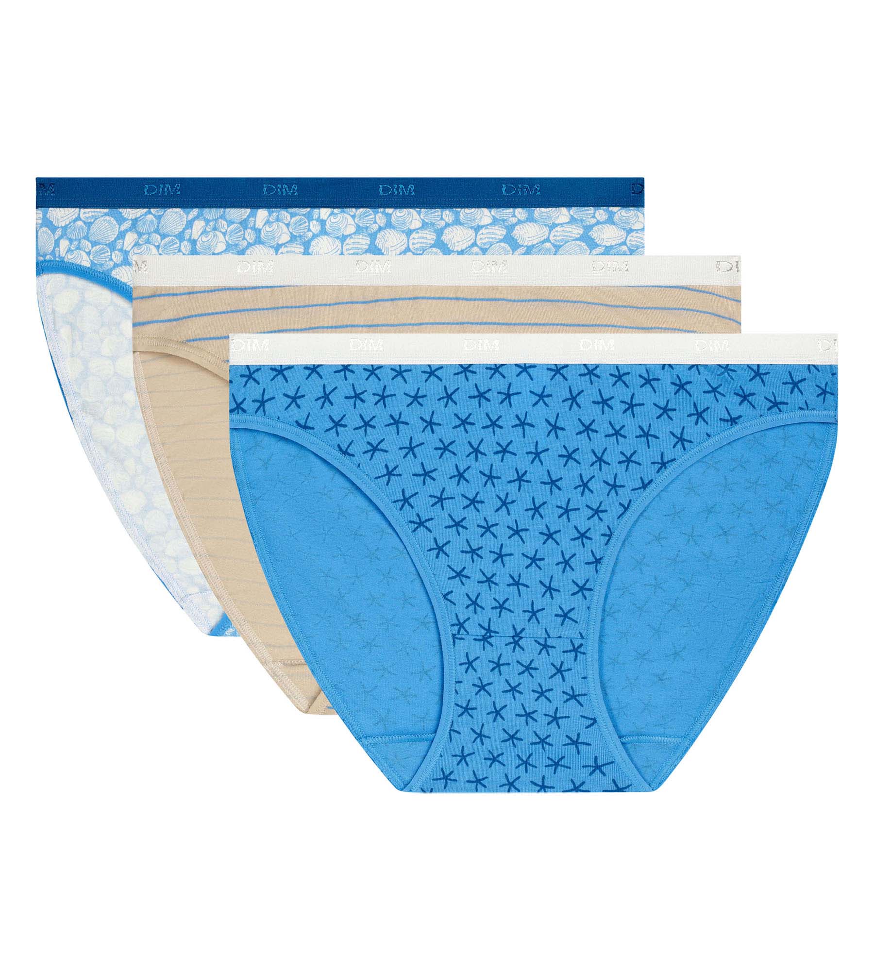 Lass dich von den Farben des Ozeans inspirieren mit dem 3er-Pack Damenunterhosen Les Pockets von Dim aus Stretch-Baumwolle.