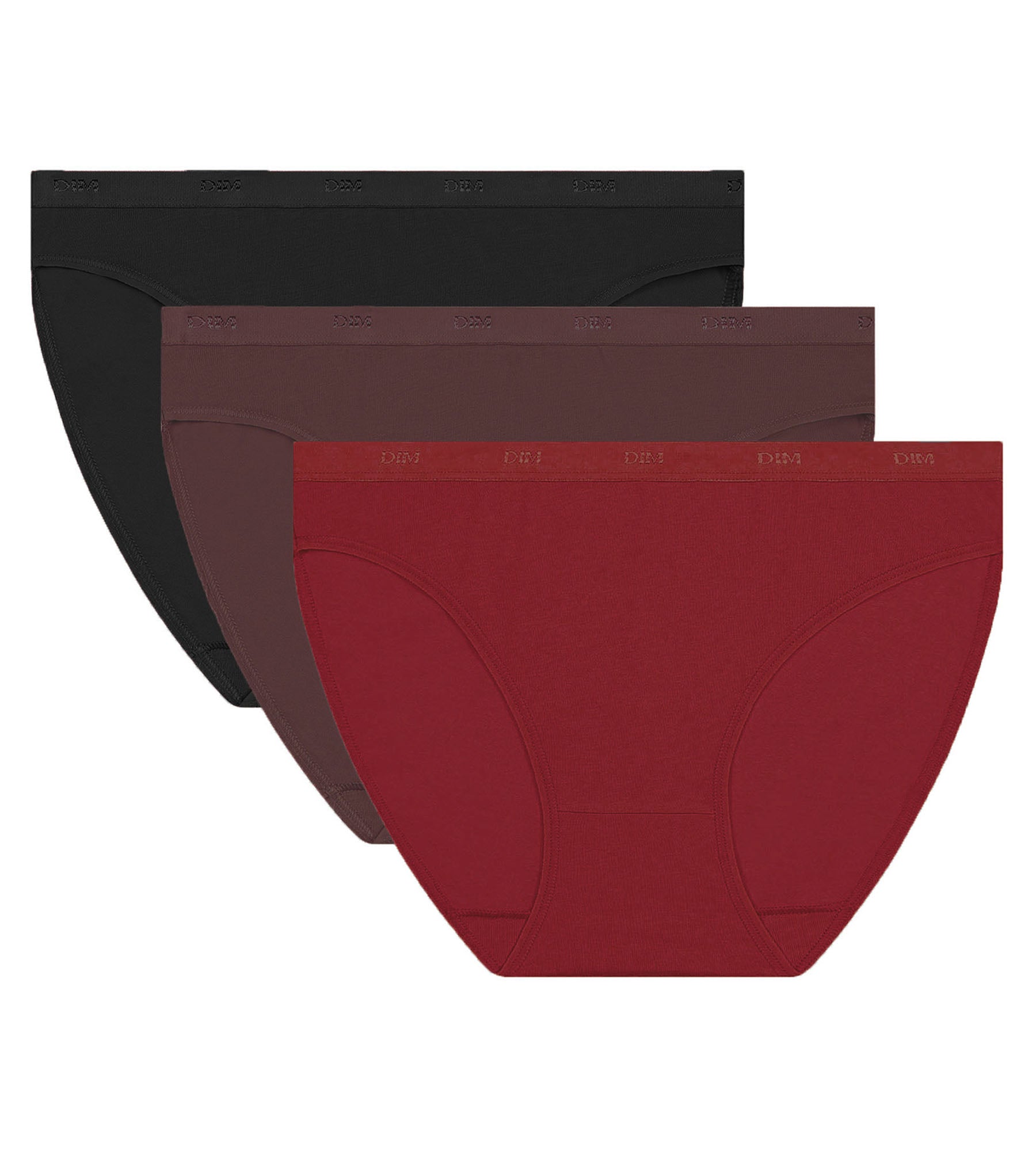3er-Pack Damen-Slips Cacao, Rot, Schwarz Les Pockets Ecodim