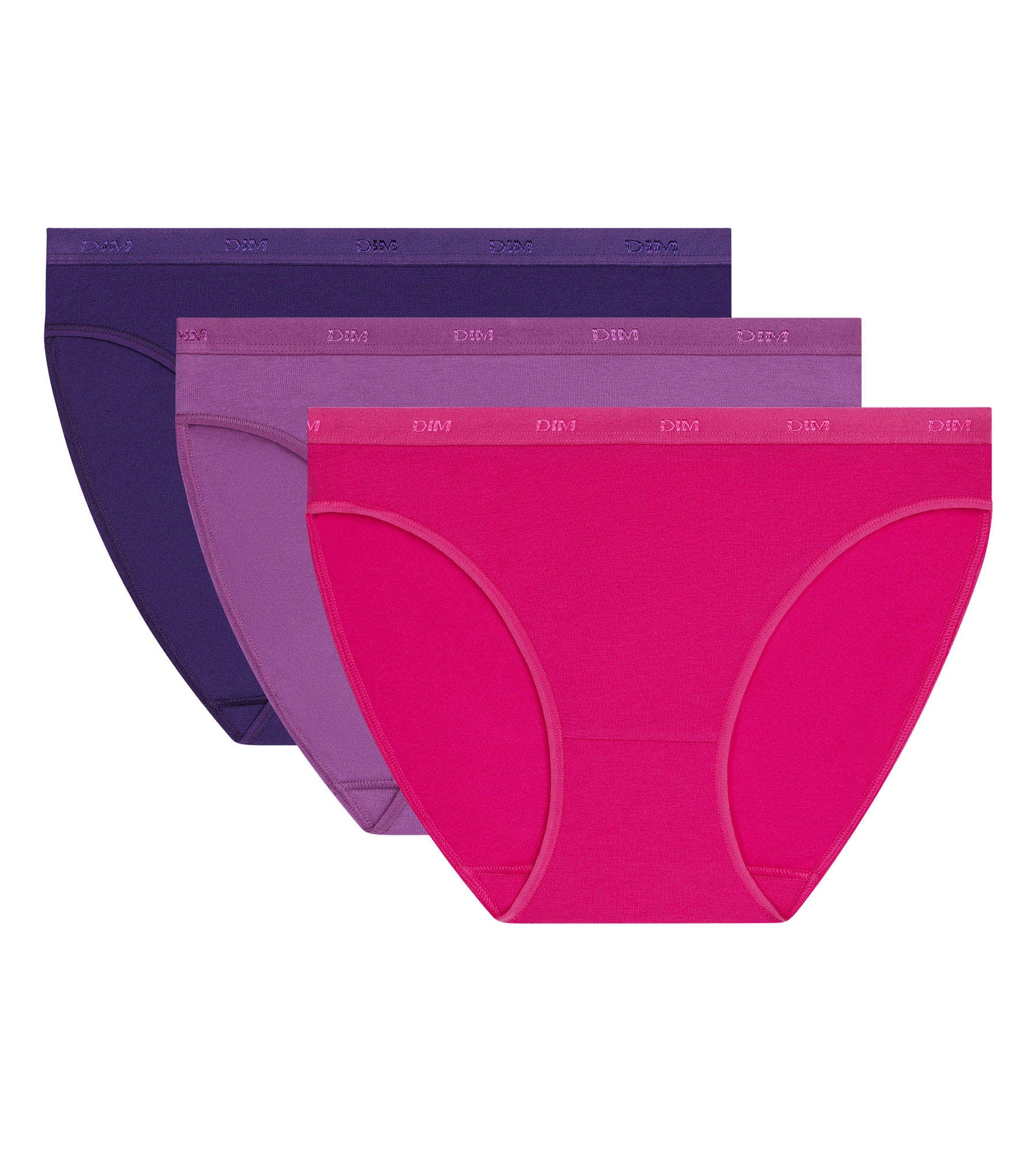 Bring Schwung in deine Basics mit dem 3er-Pack Damen-Slips Les Pockets EcoDim aus violetter Stretch-Baumwolle in leuchtenden Farben.