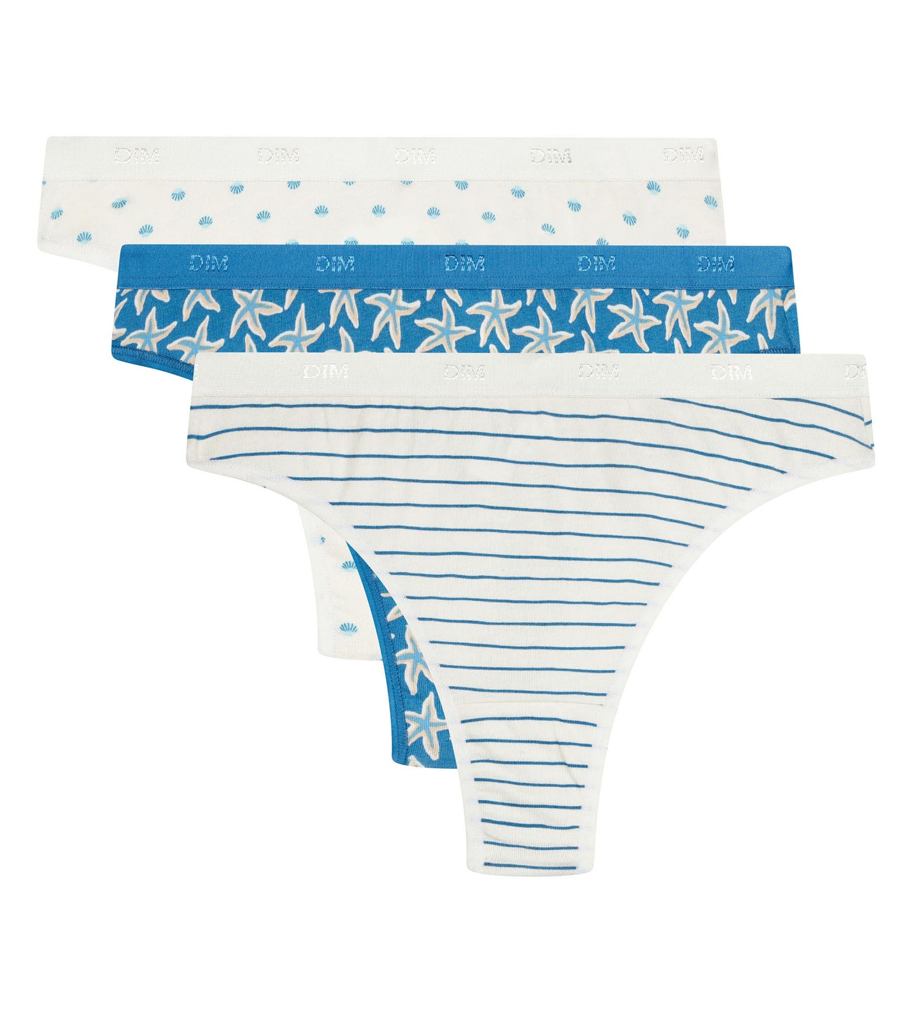 Hol dir den schicken Marinelook mit dem 3er-Pack Damen-Strings „Les Pockets” von Dim aus Stretch-Baumwolle mit Küstenmotiven.
