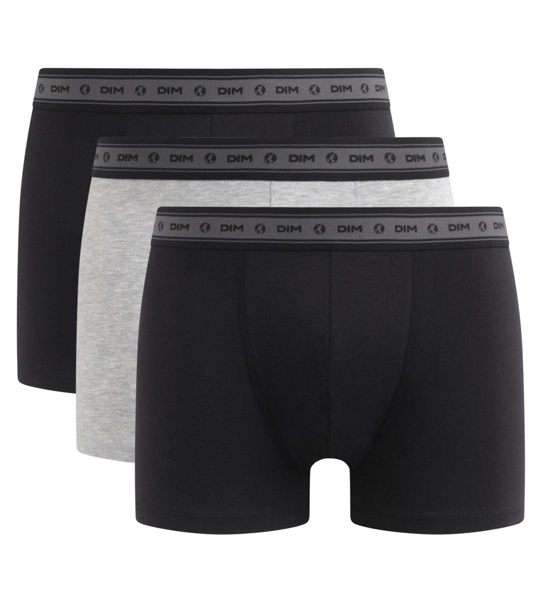 Verbessern Sie Ihren Komfort mit dem Dim Good-Pack mit 3 schwarzen und perlgrauen Herren-Boxershorts aus Bio-Baumwolle.
