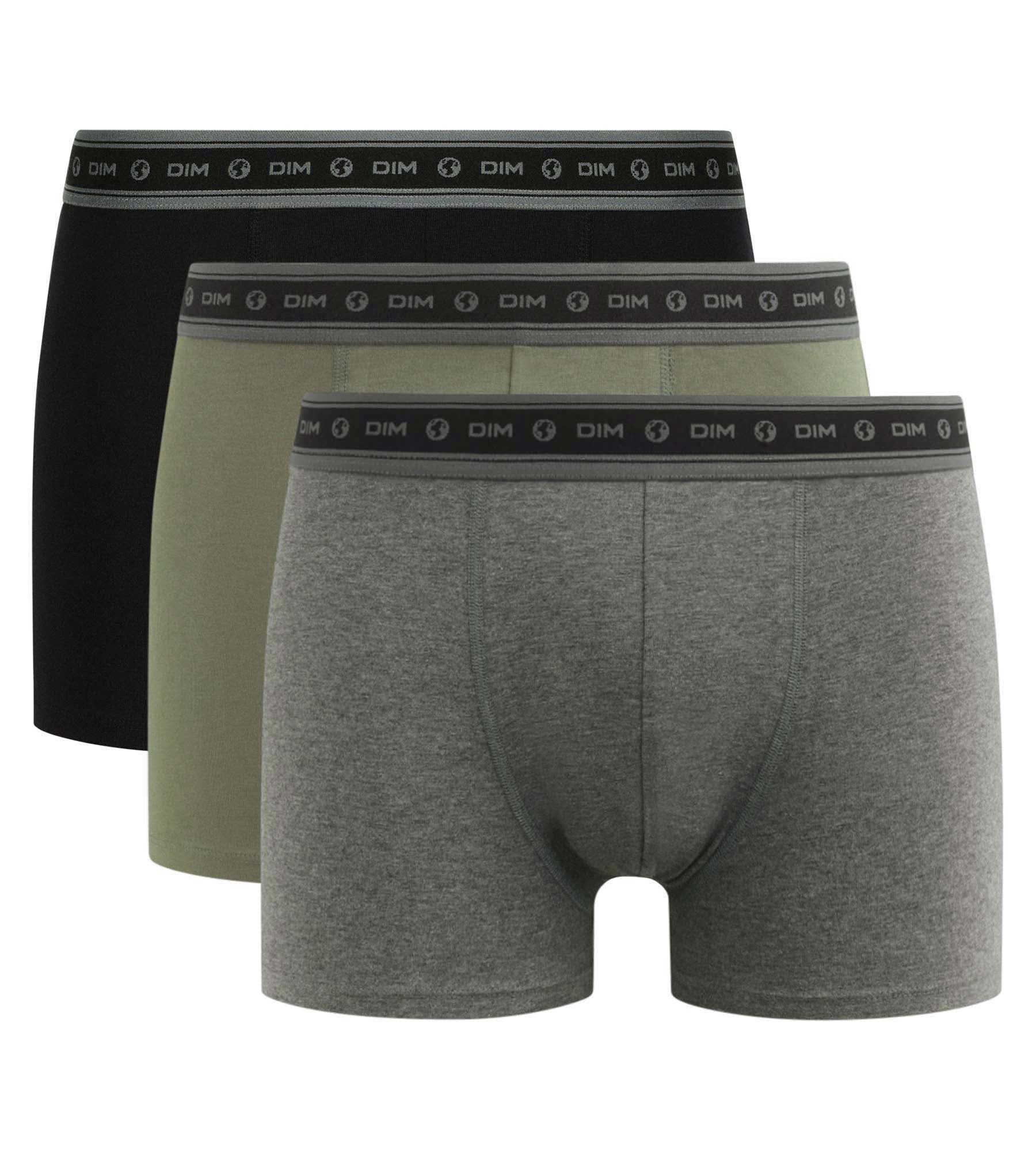 3er-Pack Herren-Boxershorts aus Bio-Baumwolle in Schwarz, Anthrazit und Grün. Dim Good