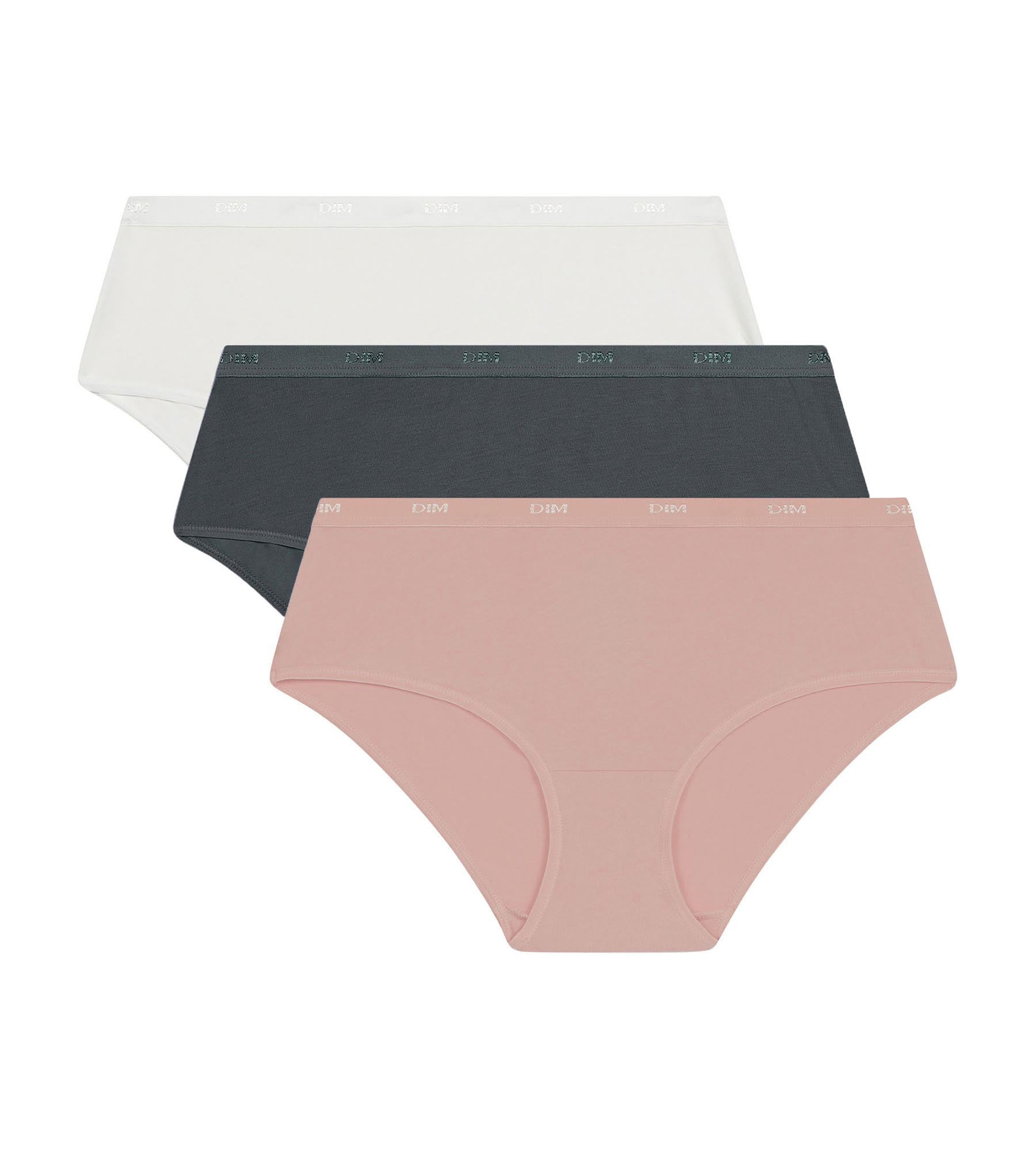 3er-Pack Hipster aus Stretch-Baumwolle in Grau/Rosa – Pockets Ecodim