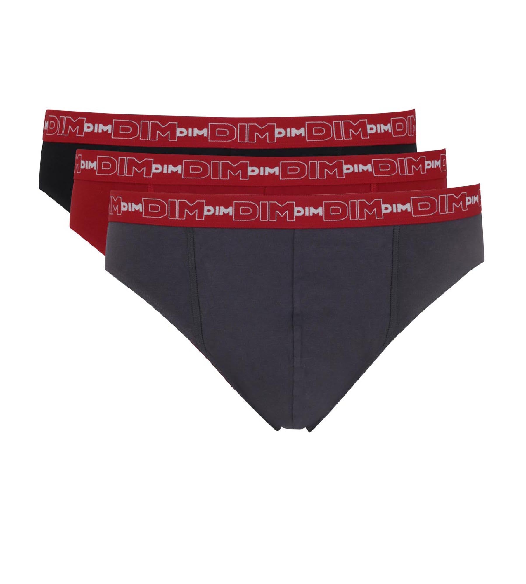 3er-Pack Slips aus Stretch-Baumwolle grau/chilirot/schwarz