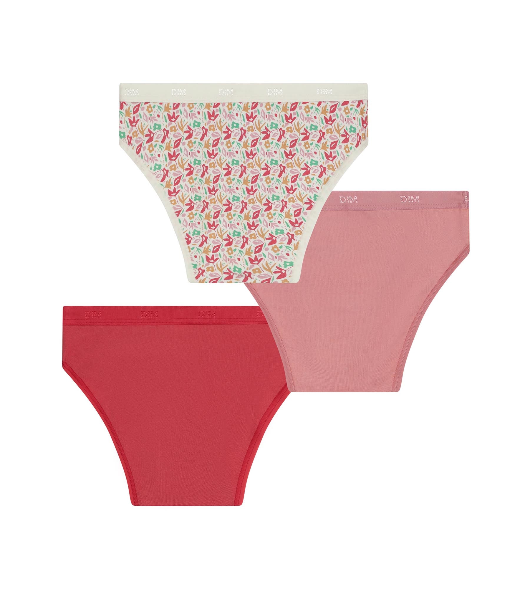 Dieses Les Pockets-Set ist für den täglichen Gebrauch gedacht und umfasst drei Mädchen-Slips in einer einfach zu kombinierenden Rot- und Rosapalette. Diese Mädchen-Slips aus weicher und bequemer Stretch-Baumwolle lassen sich mühelos anziehen. Das Set besteht aus einem einfarbigen roten Slip für Teenager mit einer kleinen Blume, einem rosa Slip mit Hibiskus-Motiv und einem Slip für Mädchen mit Allover-Print.