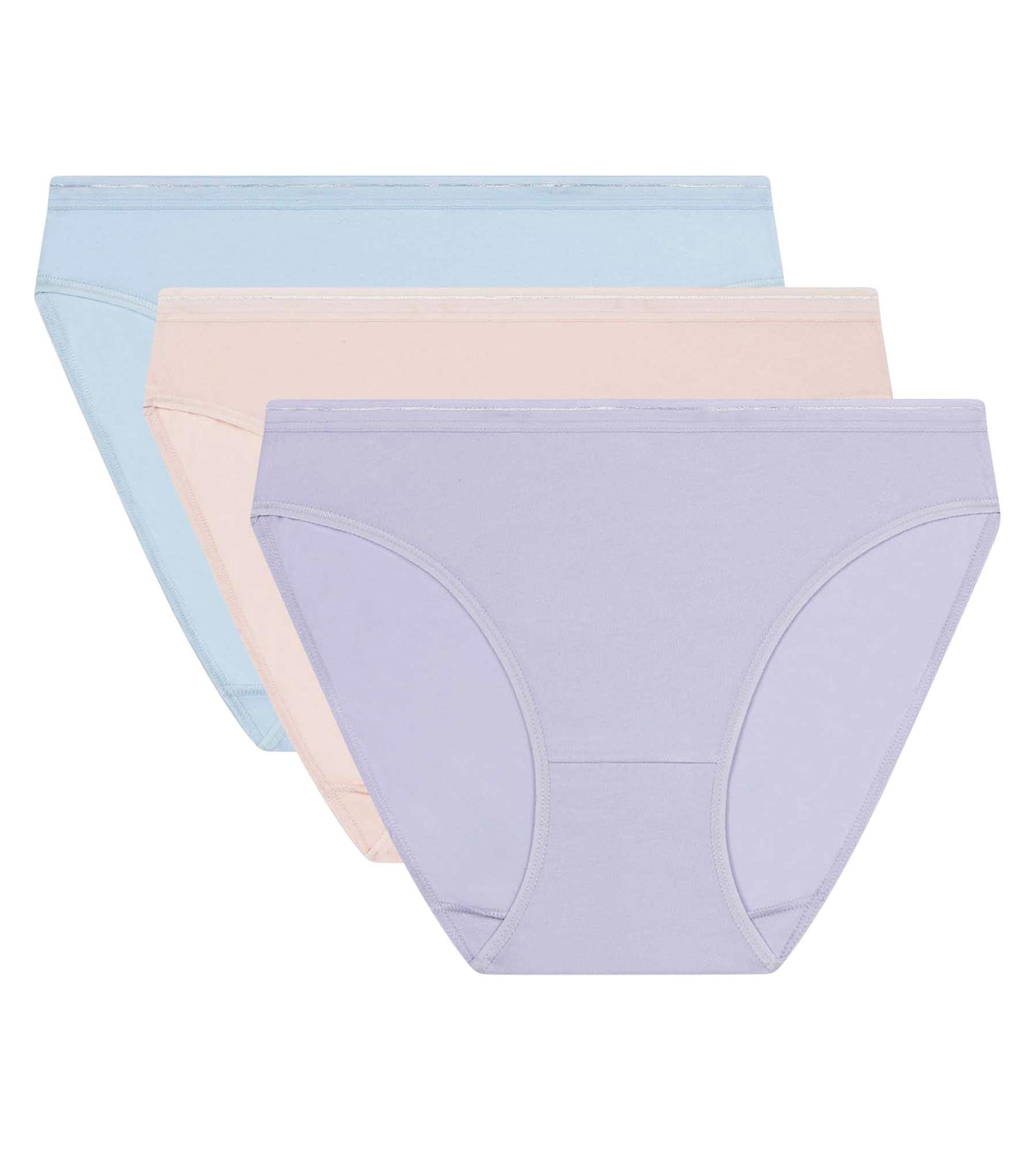 Mixen Sie Komfort, Weichheit und Stil mit dem 3er-Pack Damen-Slips aus Baumwolle von Dim x Ines de La Fressange in Pastellfarben.