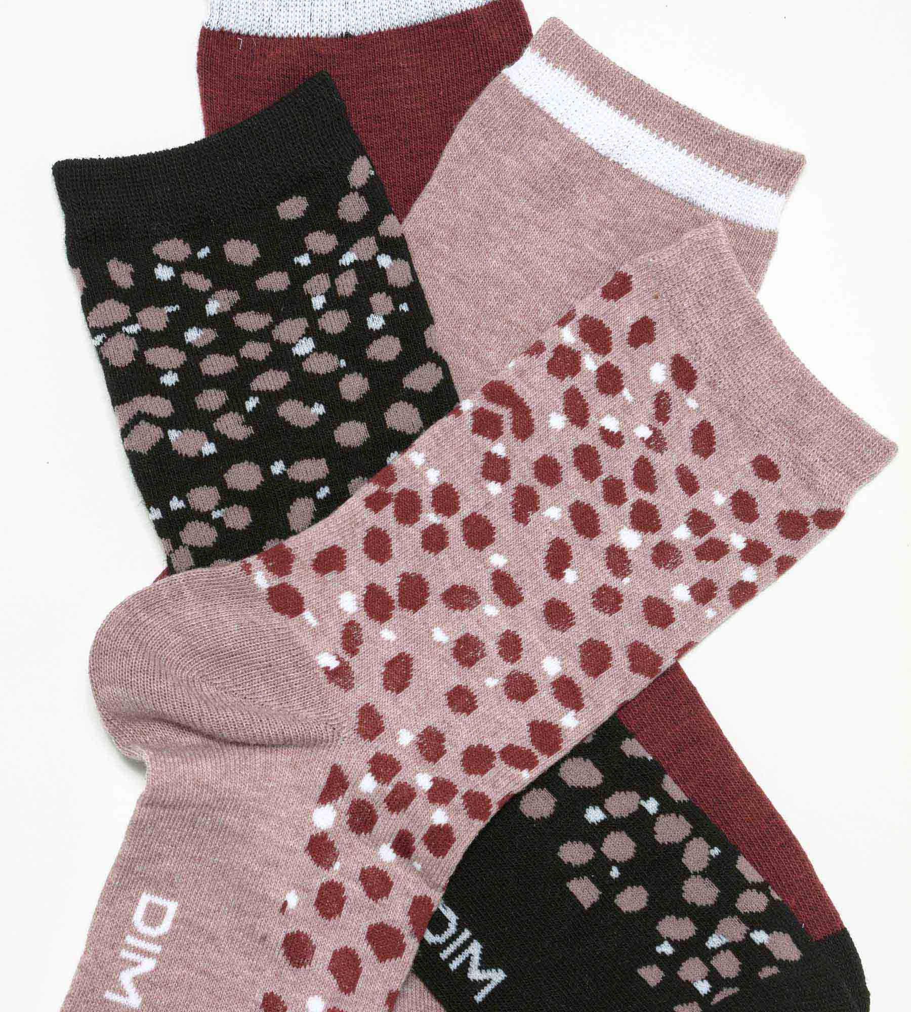 4er-Pack Damensocken altrosa/schwarz mit Tupfen-Muster - EcoDIM Style