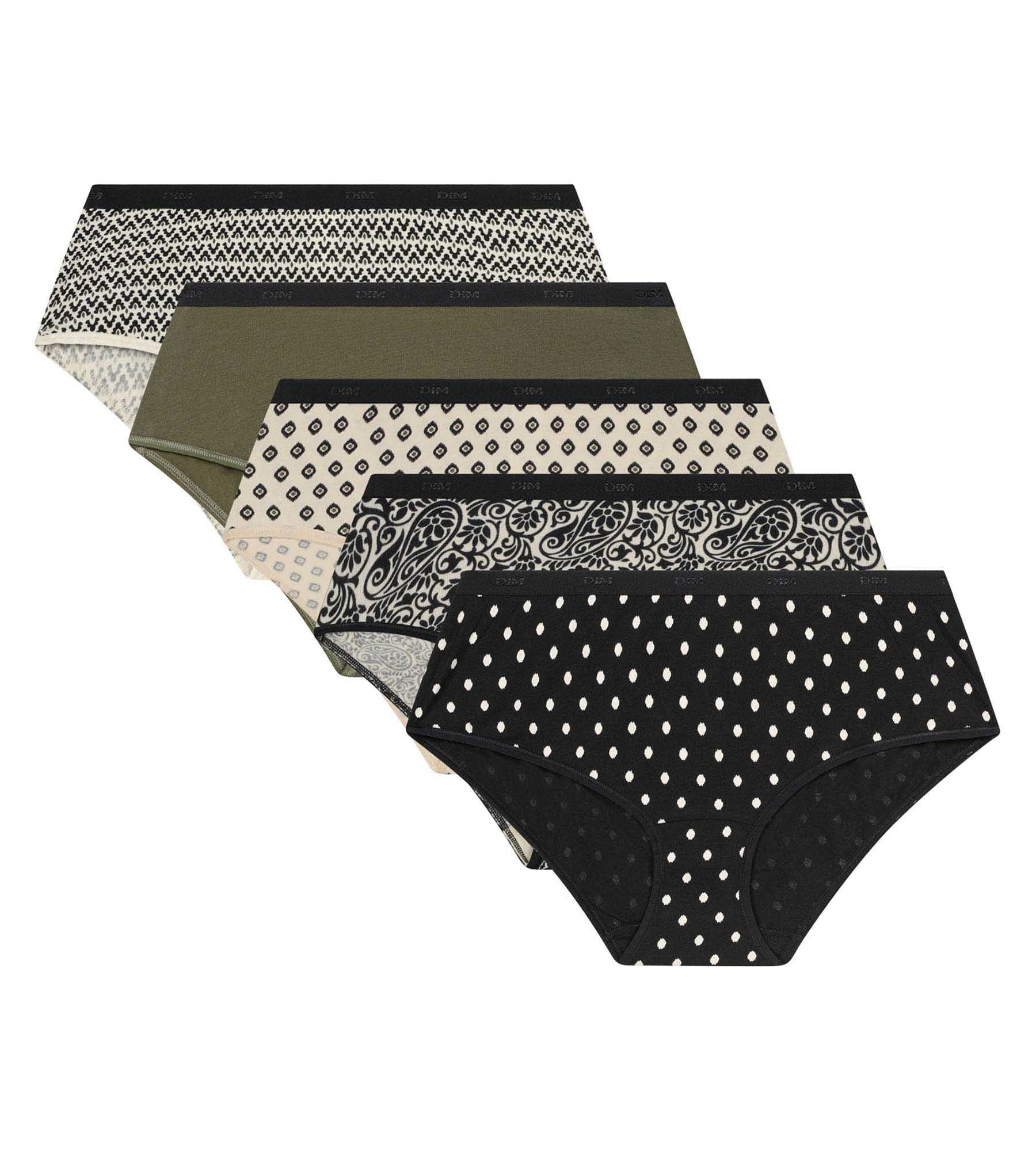 5er-Pack Damen-Boxershorts mit ethnischen Motiven, khaki schwarz Les Pockets