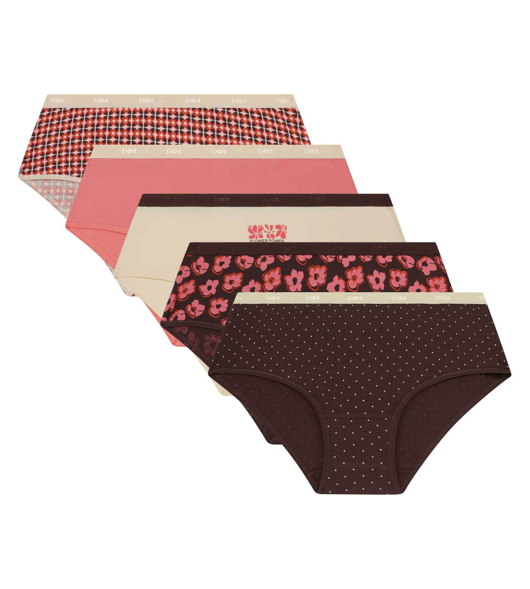 5er-Pack Damen-Boxershorts mit Retro-Motiven Rosa Braun Les Pockets
