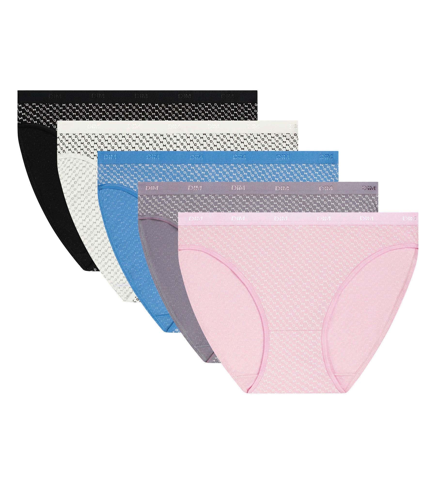 Verliebe dich in das 5er-Pack Damen-Slips aus Stretch-Baumwolle Les Pockets Logo DIM mit grafischem Stil in einer vielseitigen Farbpalette.