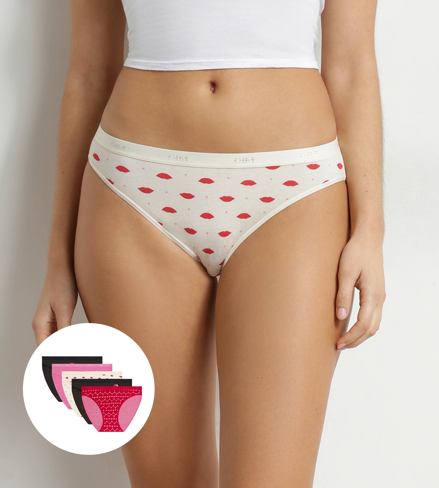 Bring ein bisschen Verspieltheit in deine Unterwäsche mit dem 5er-Pack Damenhöschen Les Pockets von Dim aus Stretch-Baumwolle mit Herzmuster.
