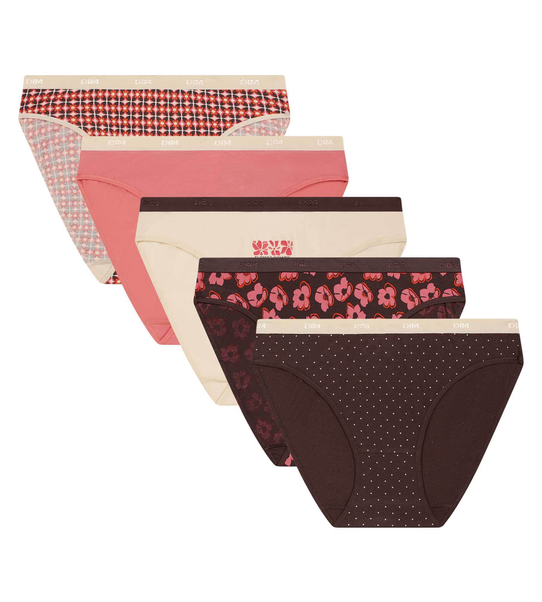Tanken Sie Komfort und Fantasie mit dem 5er-Pack Damen-Slips Les Pockets von Dim mit Rétro.