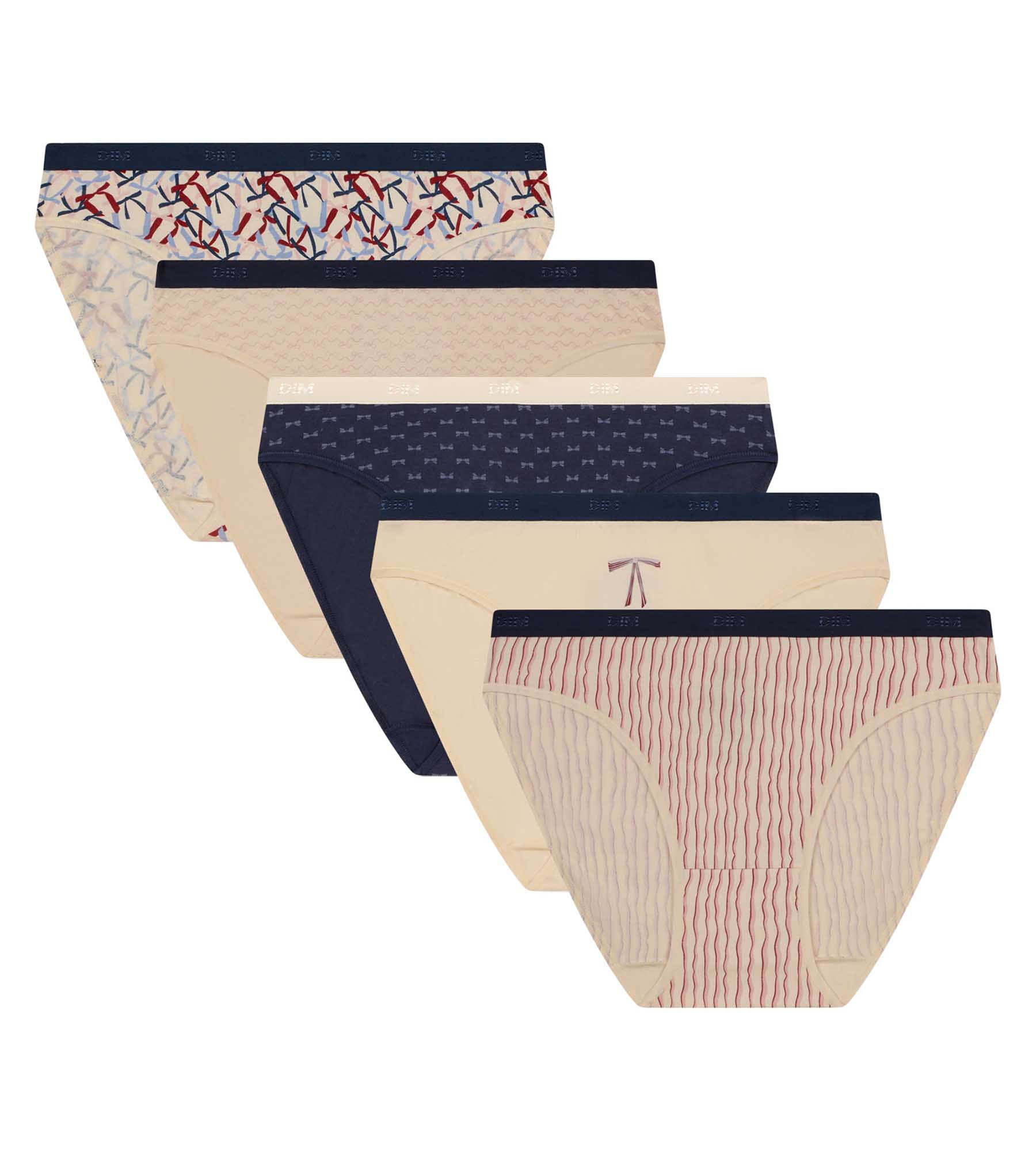 Bringe einen Hauch von Fantasie à in deinen Alltag mit diesem 5er-Pack Dim Les Pockets Damen-Slips mit grafischem Bandmuster.