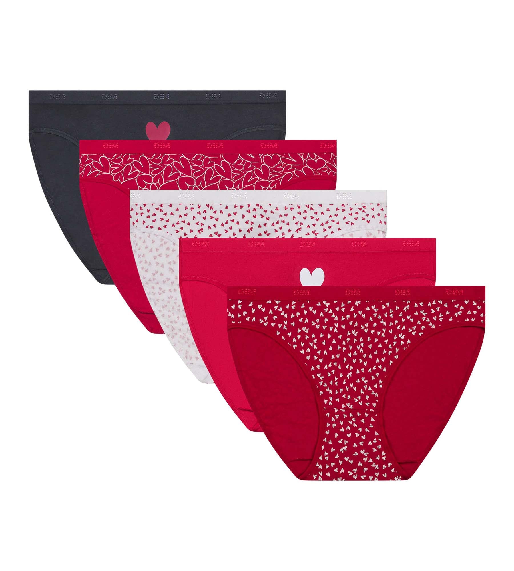 Zeige einen regressiven und charmanten Look mit dem 5er-Pack Slips Les Pockets von Dim aus Stretch-Baumwolle in Rot, Weiß und Schwarz mit Herzmotiven!
