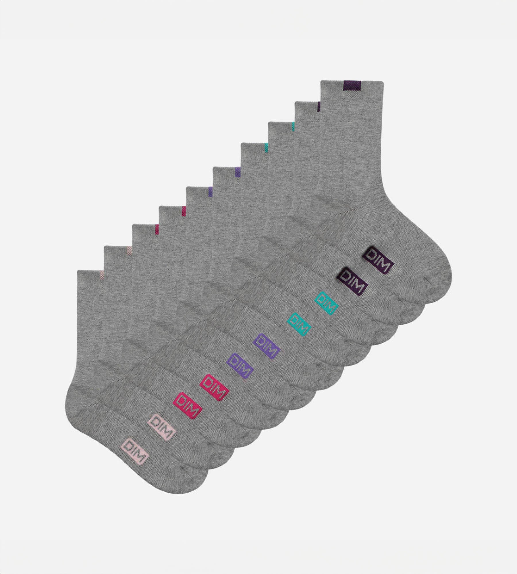 5er-Pack hellgraue Damensocken mit farbiger Markierung - EcoDIM