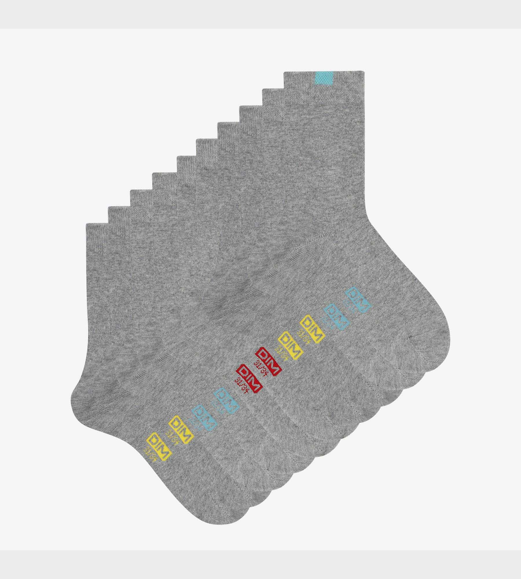 5er-Pack Kindersocken aus Baumwolle grau meliert/farbig markiert - EcoDIM