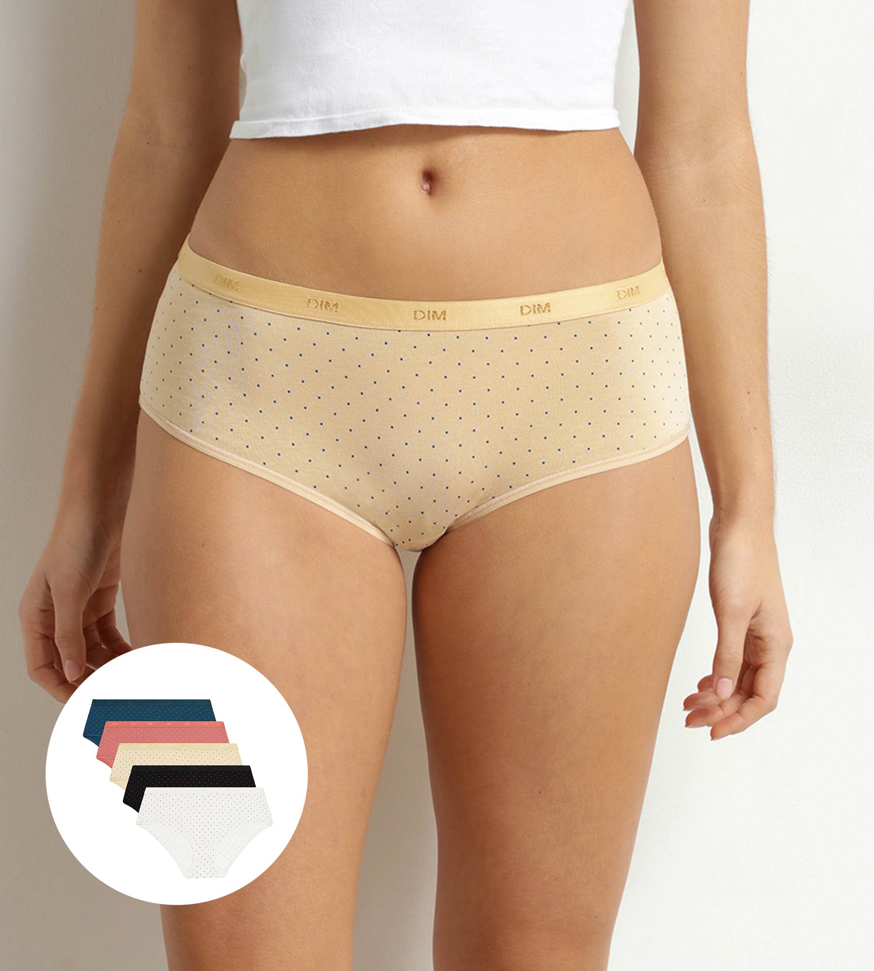 Bring das zeitlose Punktemuster mit diesem 5er-Pack Dim Les Pockets Damen-Shorts aus Stretch-Baumwolle in warmen, modernen Farbtönen wieder auf den neuesten Stand.