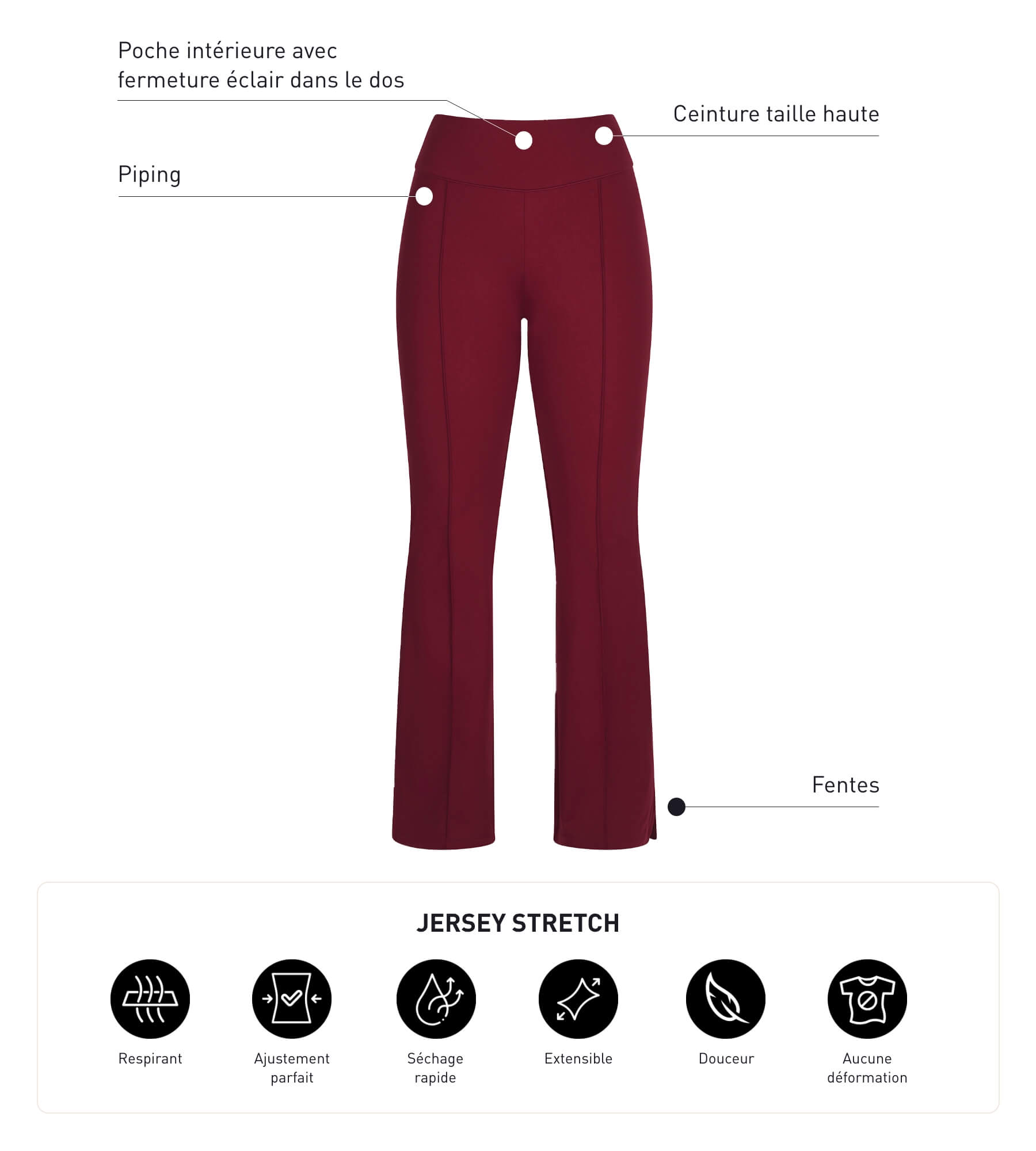 Bewegen Sie sich mit Leichtigkeit und Modernität dank der ausgestellten Sporthose für Damen von Dim Move aus bordeauxfarbenem Stretch-Jersey!