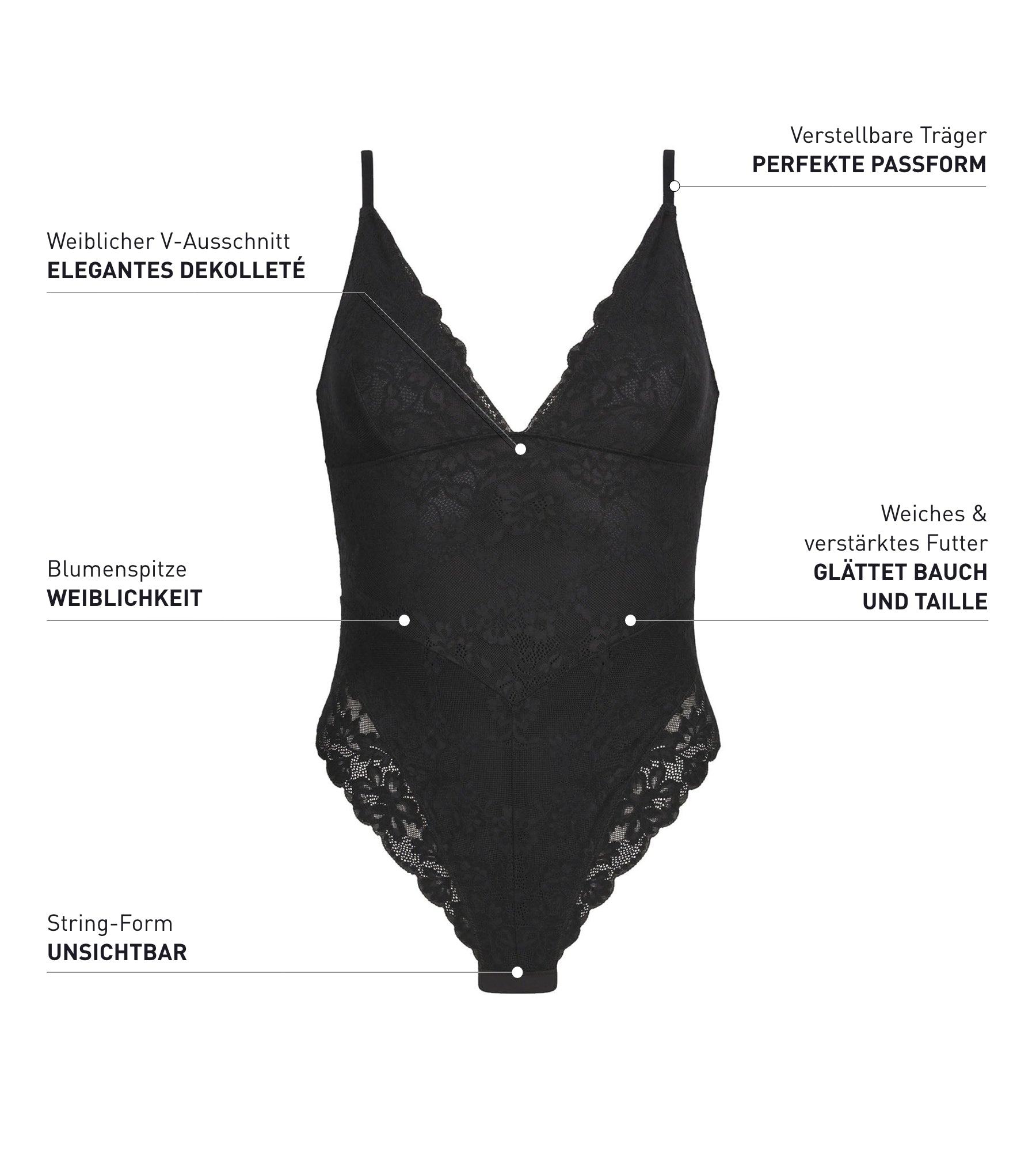 - FEMINITÄT: Der Body ist komplett aus Spitze und setzt auf raffinierte Verführung.