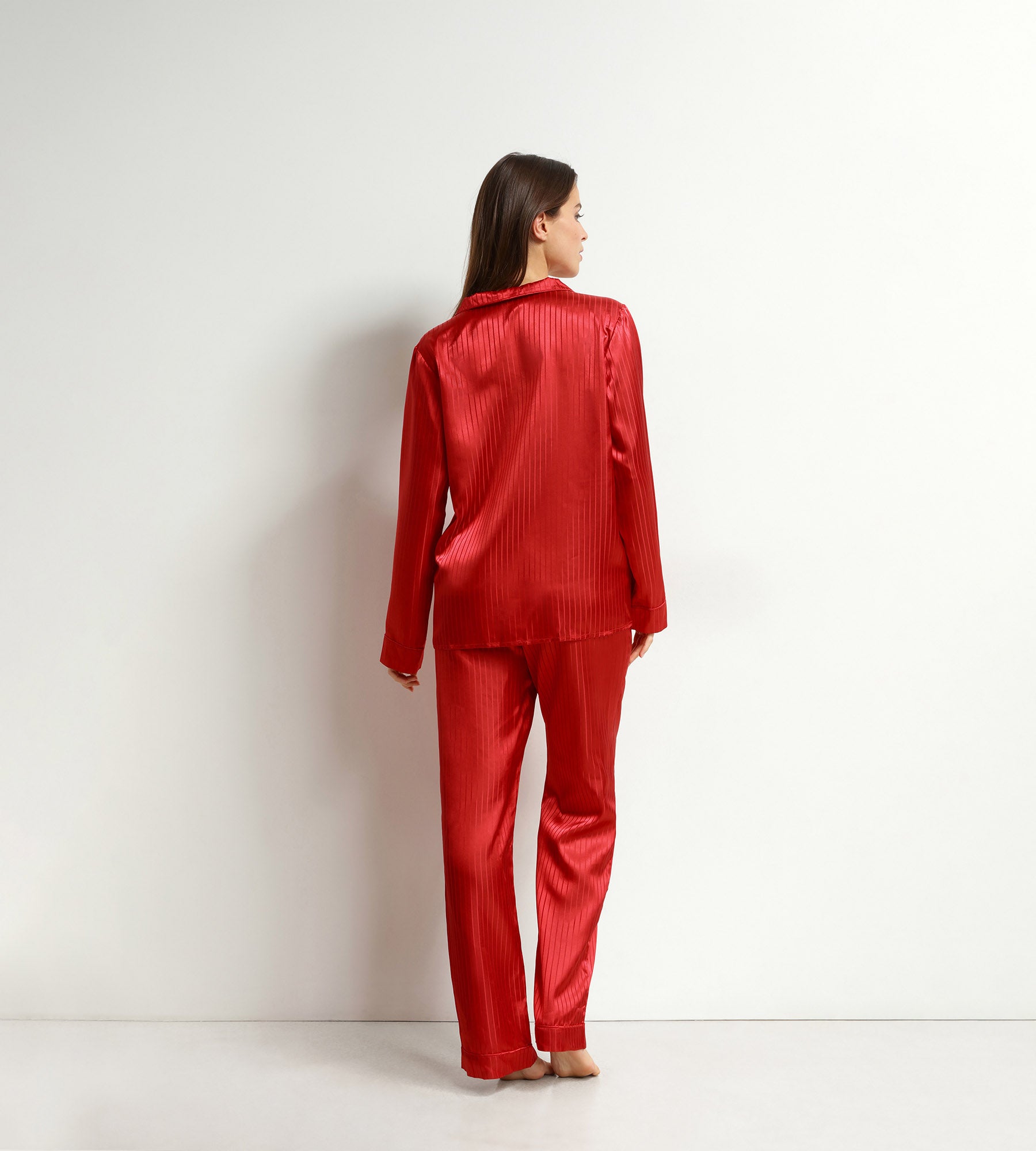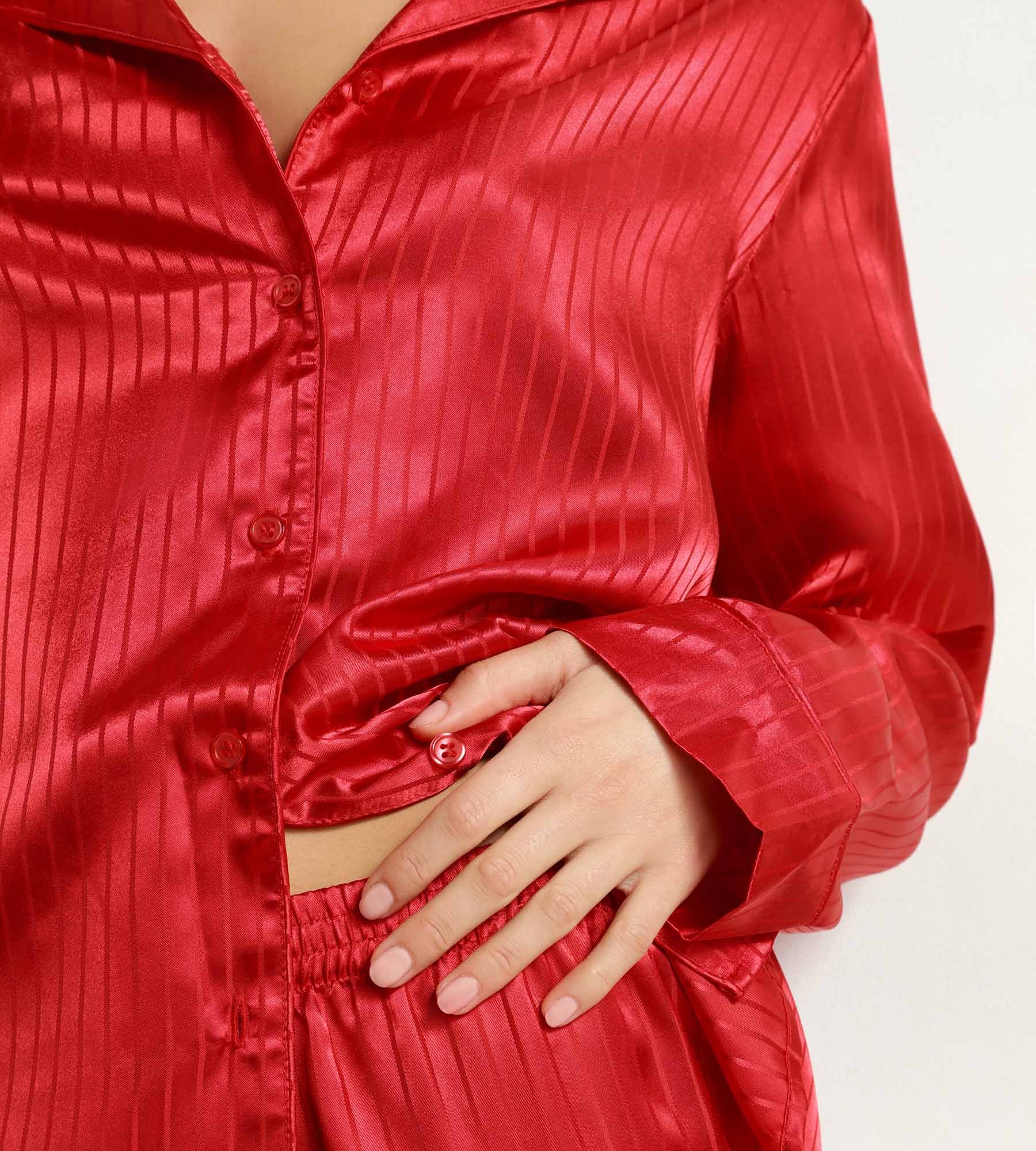 Glamour und Komfort vereint im Pyjama-Set Dim Don’t Disturb für Damen aus Satin in Rot Valentin mit glänzendem Streifeneffekt, perfekt für stilvolle Nächte!