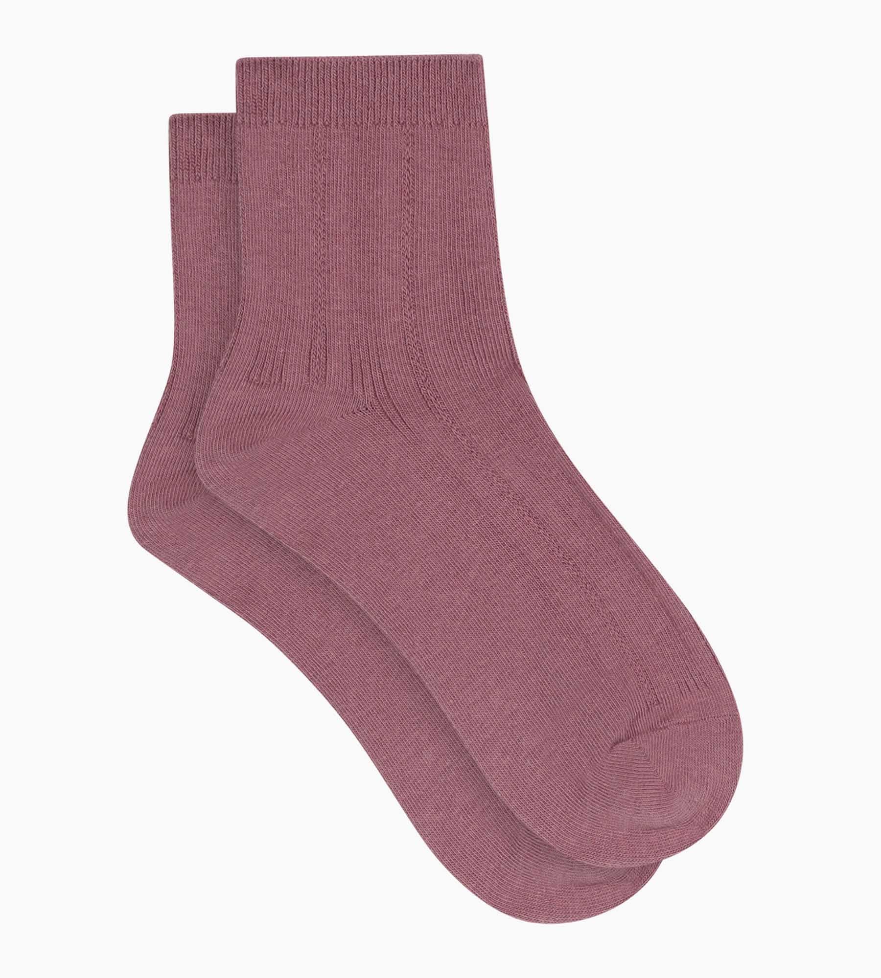 Damen-Socken aus Baumwolle mit Pointelle-Strick in Altrosa von Dim La Mode