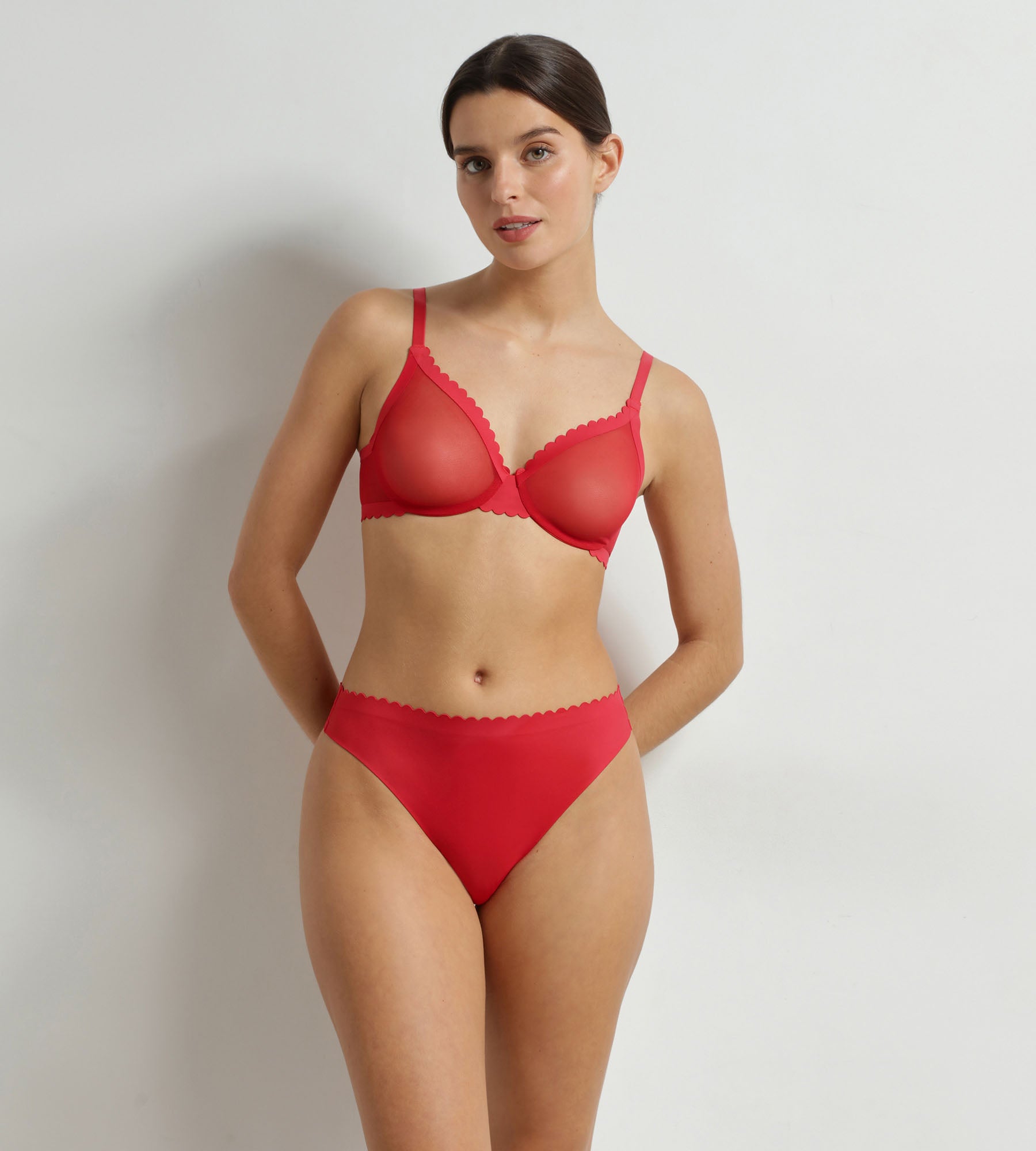 Entdecke den Bügel-BH aus der Dim Body Touch Cheeky-Reihe, erhältlich in Valentinrot oder Schwarz!