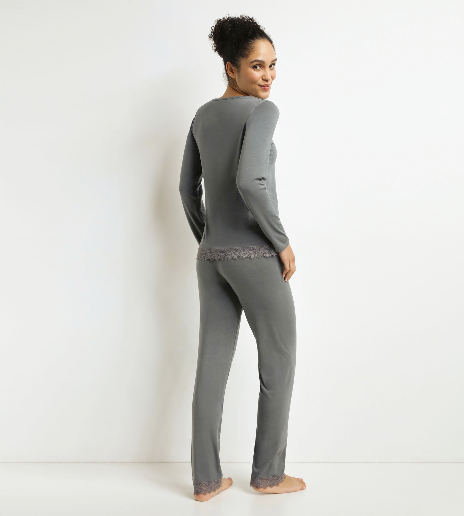 Damenpyjama Hose Grau mit Spitze Don't Disturb