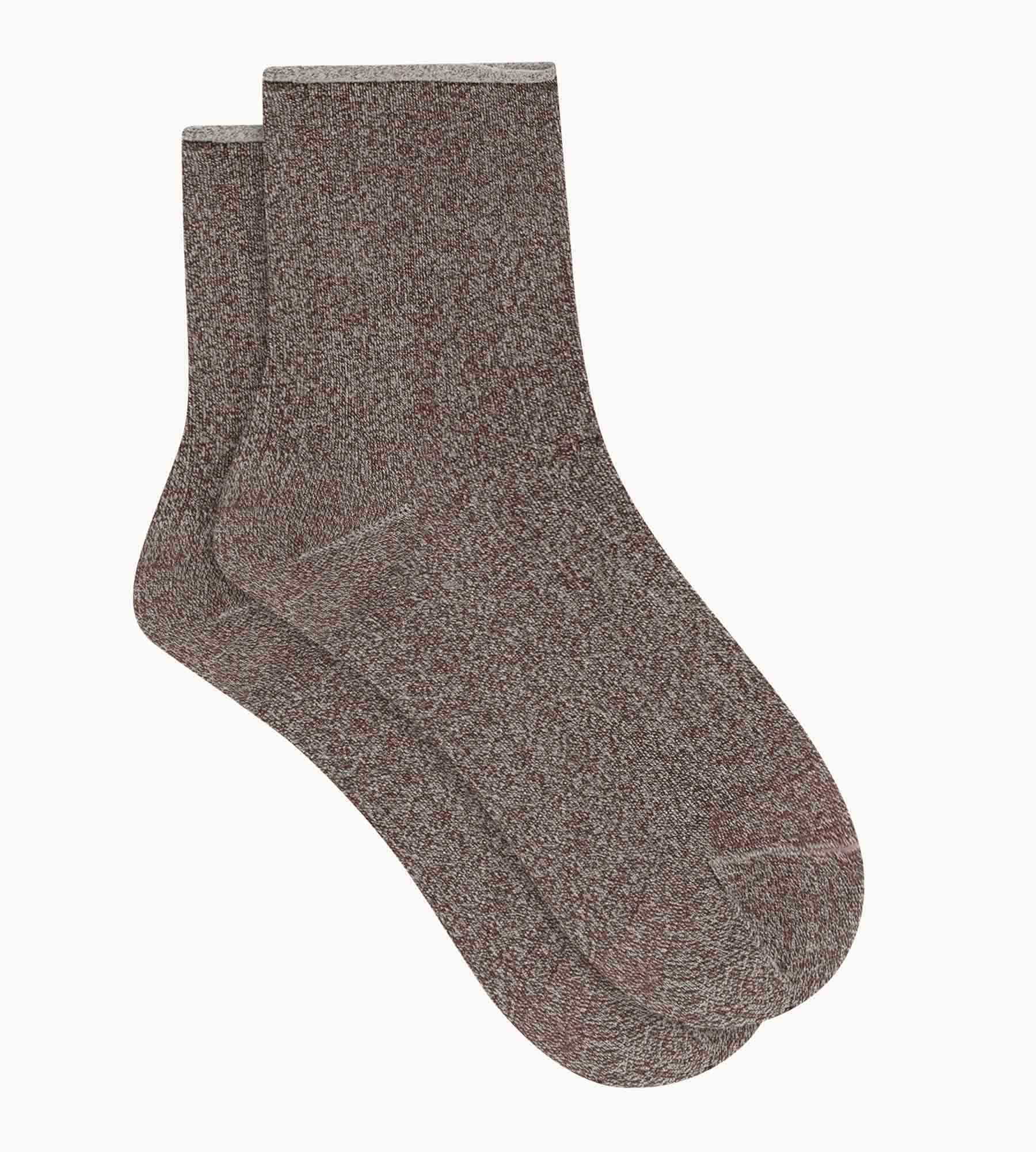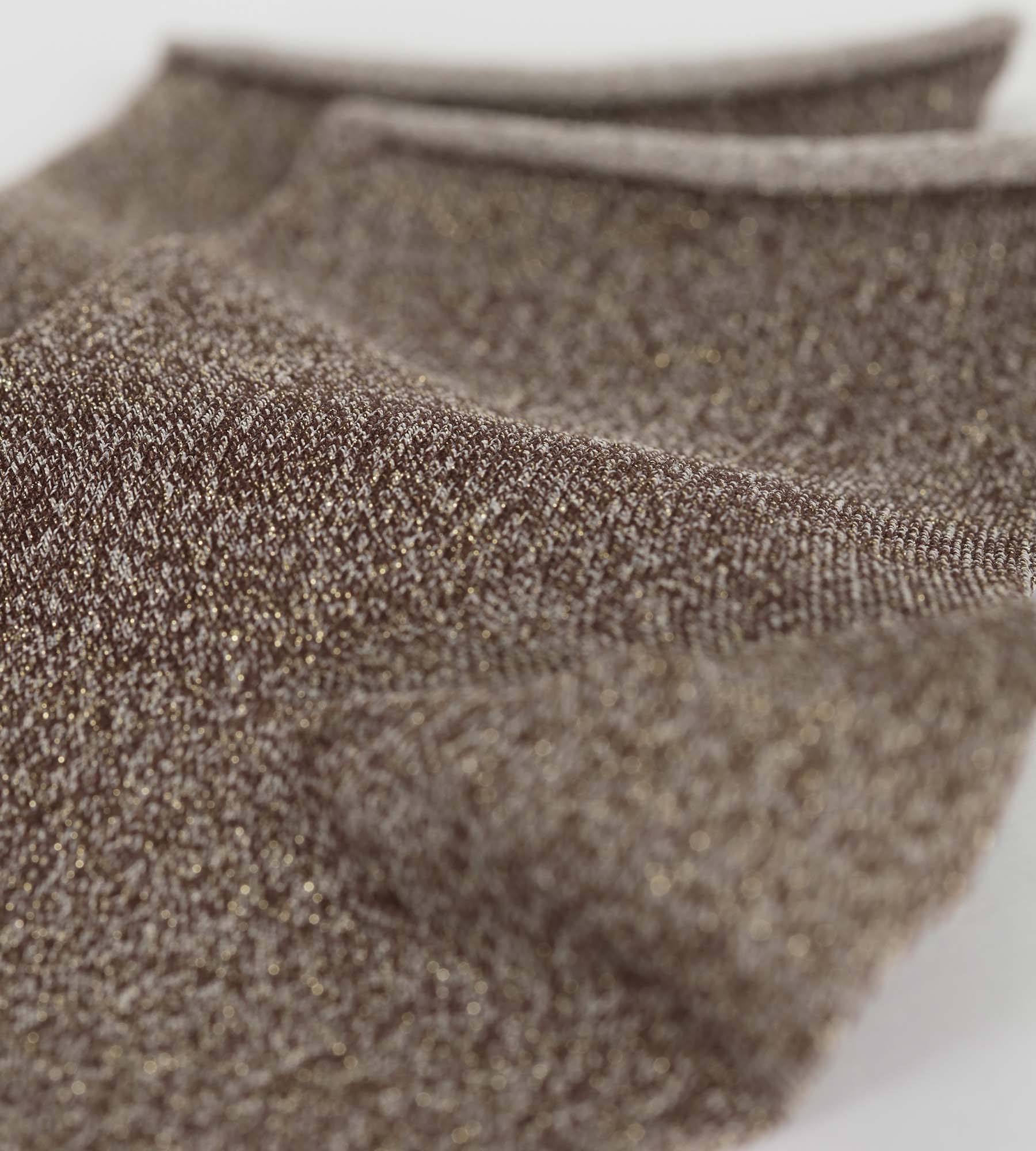 Gestalte eine modische Sockenschublade mit den einfarbigen Dim Mode-Damensocken aus Lurex, indem du zwischen einem natürlichen Braun, einem essentiellen Schwarz und modischeren Farbtönen wechselst.