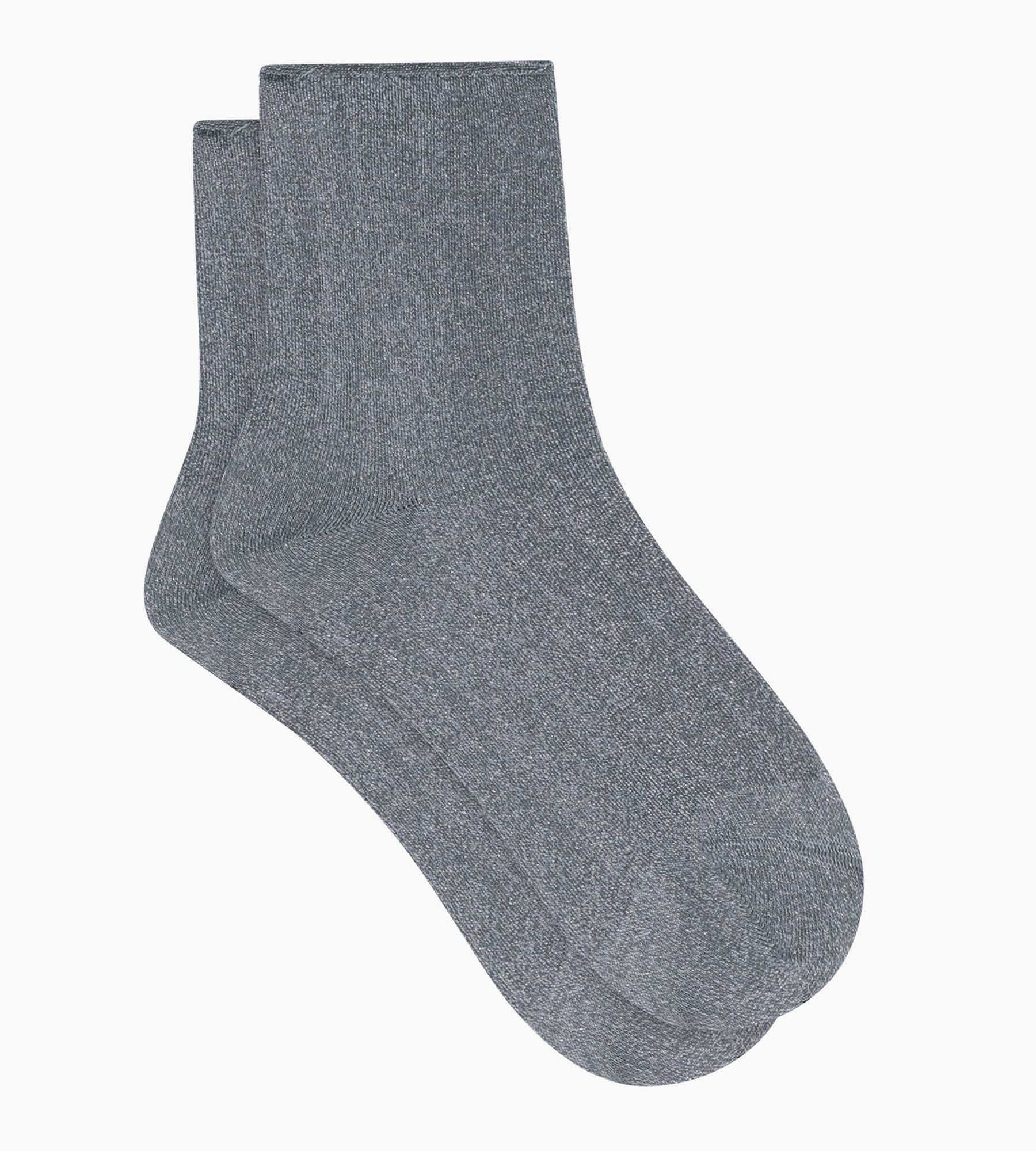 Die Damen-Socken aus Lurex von Dim Mode in schimmerndem Hellgrau setzen auf Weichheit und Leichtigkeit.