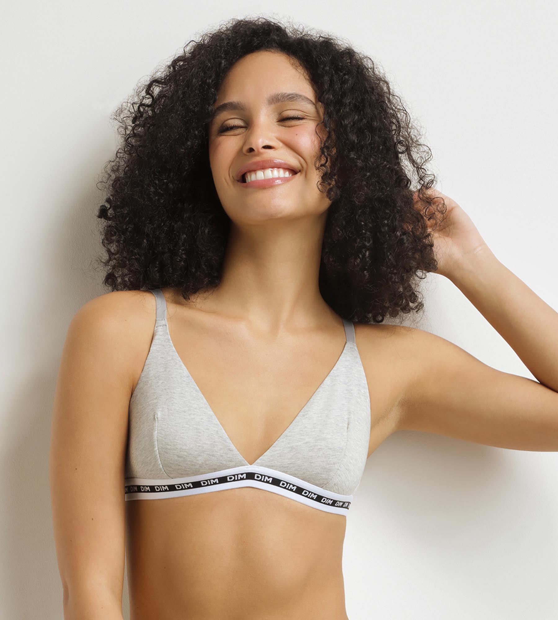 Der Triangel-BH für Frauen aus grau melierter Modal-Baumwolle von Dim Icons bietet Komfort und Einfachheit.