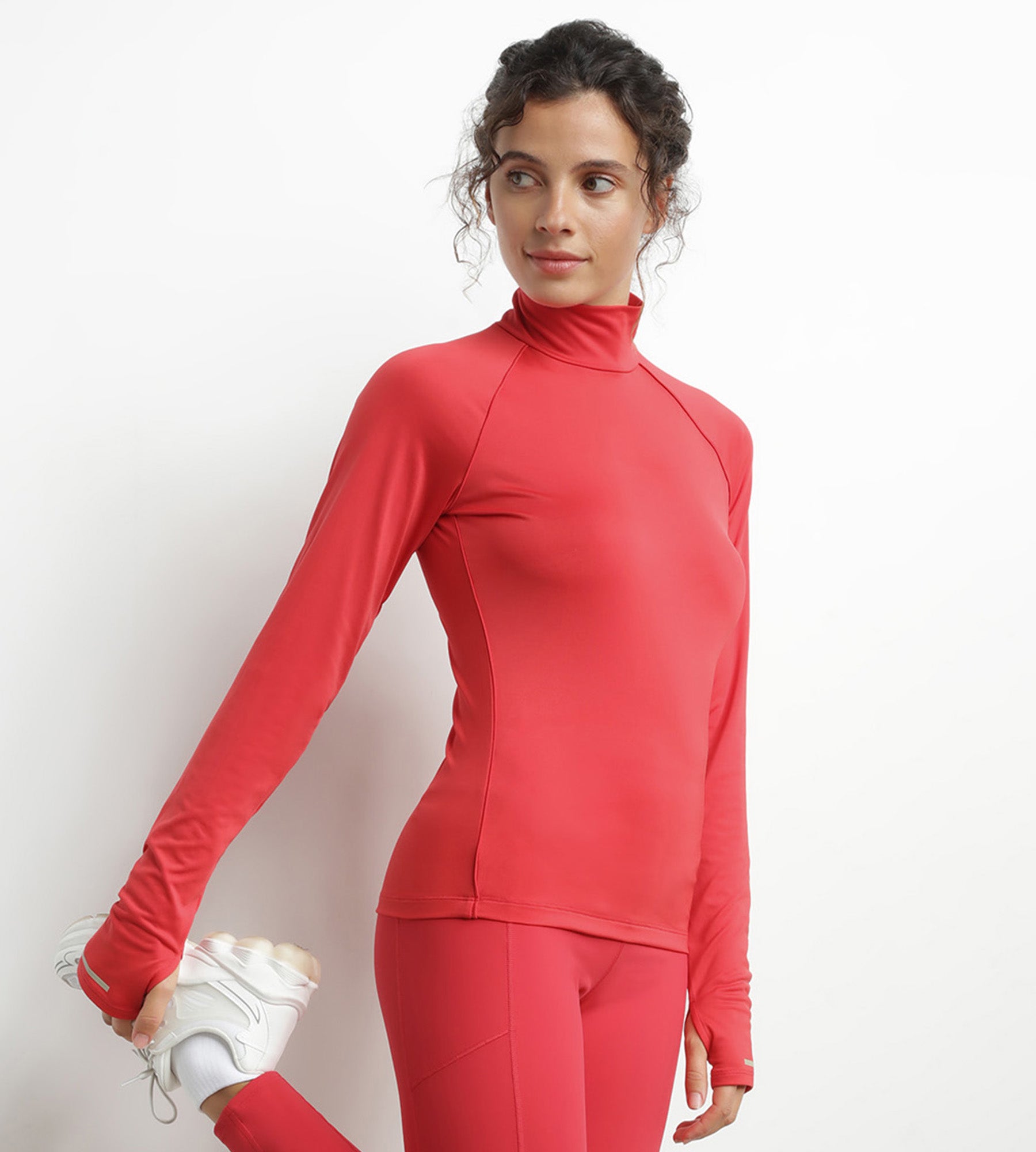 Dim Move Damen-Sportoberteil mit Stehkragen aus Mikrofaser in Rot