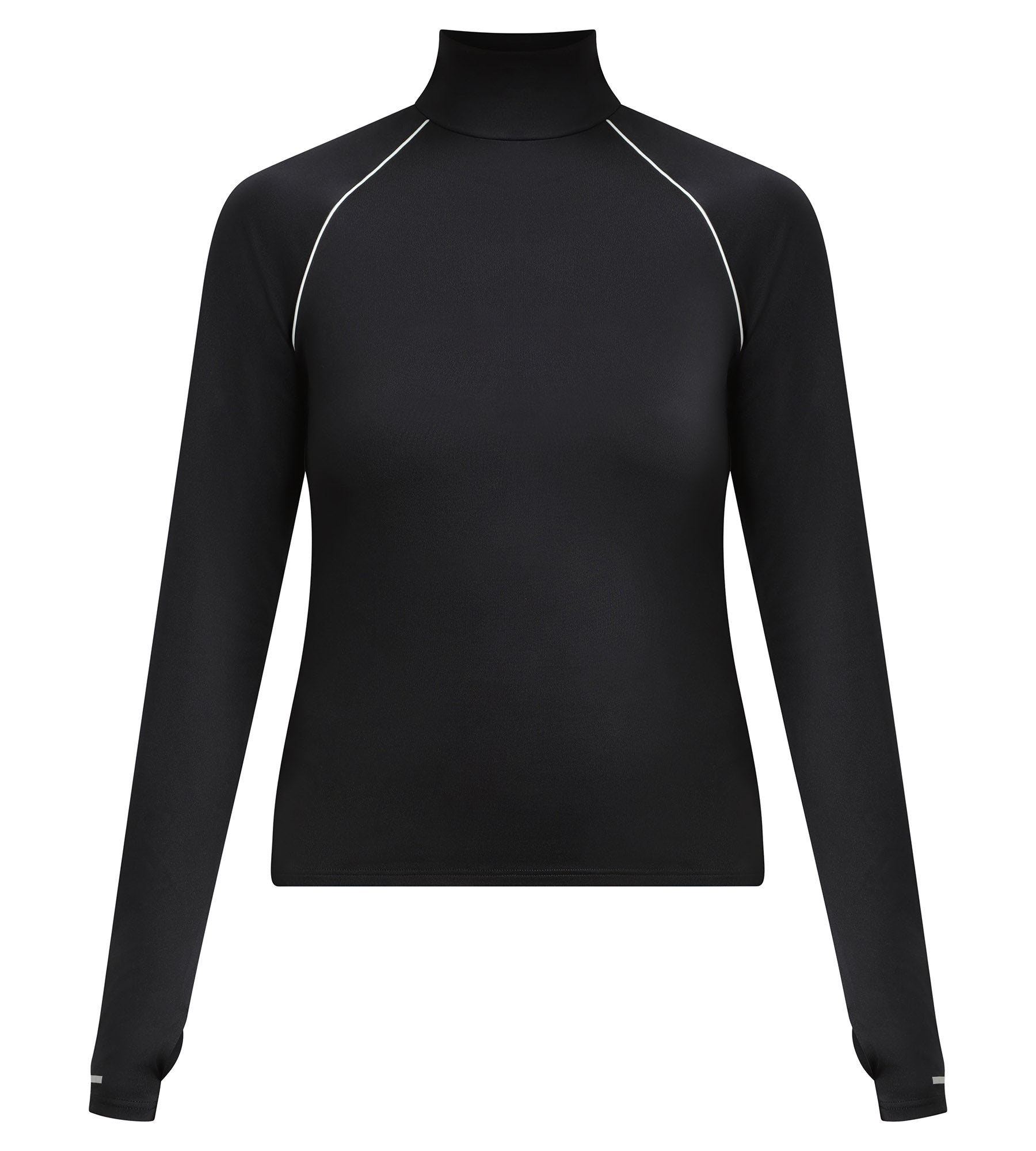 Dim Move Damen-Sportoberteil mit Stehkragen aus schwarzer Mikrofaser