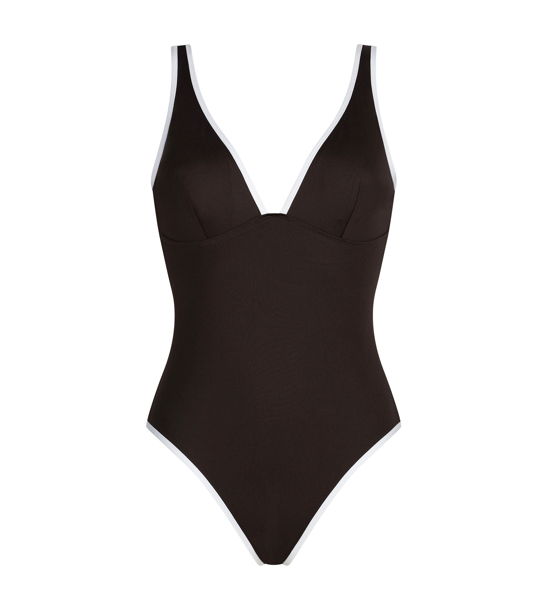 Mit seinem bezaubernden tiefen Braun und seinem Body-Schnitt zeigt der einteilige Badeanzug Dim Timeless ein natürliches Dekolleté und eine perfekt geglättete Silhouette.