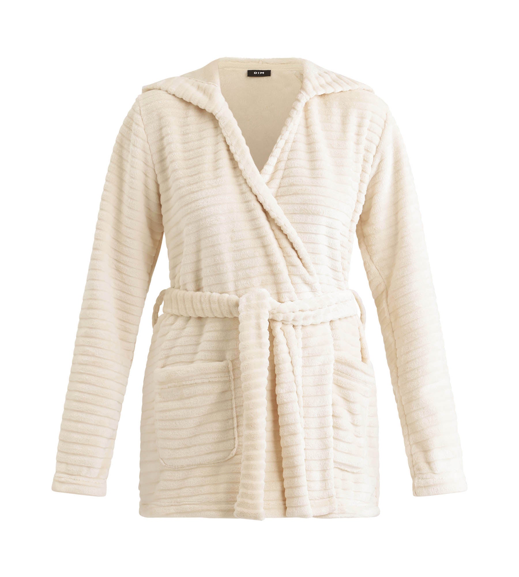 Schlüpfe in den Dim Warm-Bademantel aus elfenbeinfarbenem Kunstpelz: ein warmes und gemütliches Essential für den Winter.