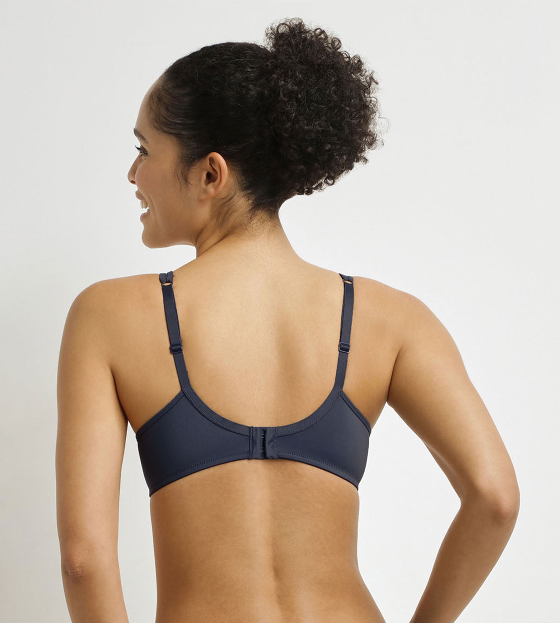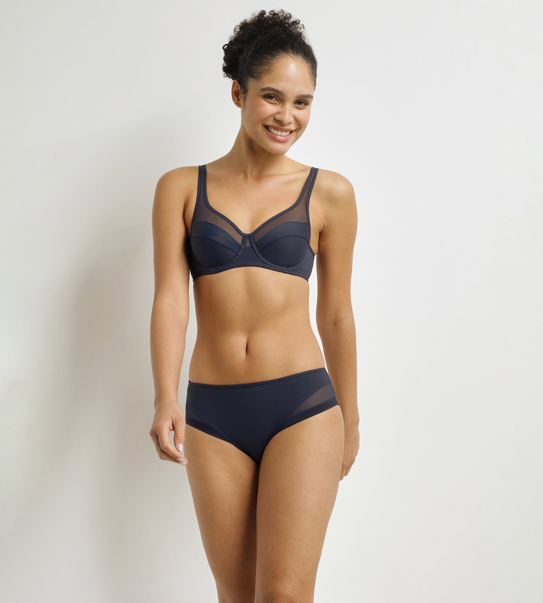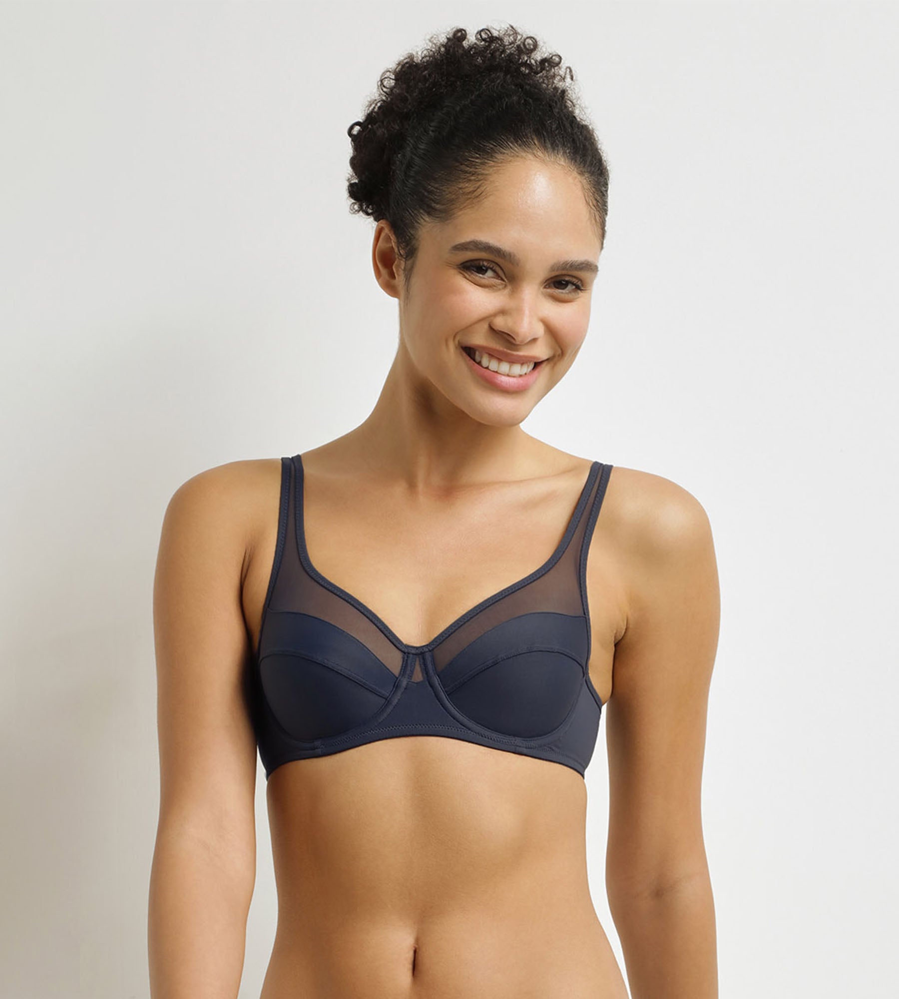 Verbinden Sie Halt, Modernität und Leichtigkeit mit dem ineinandergreifenden Generous BH aus Mikrofaser und blauem Tüll.