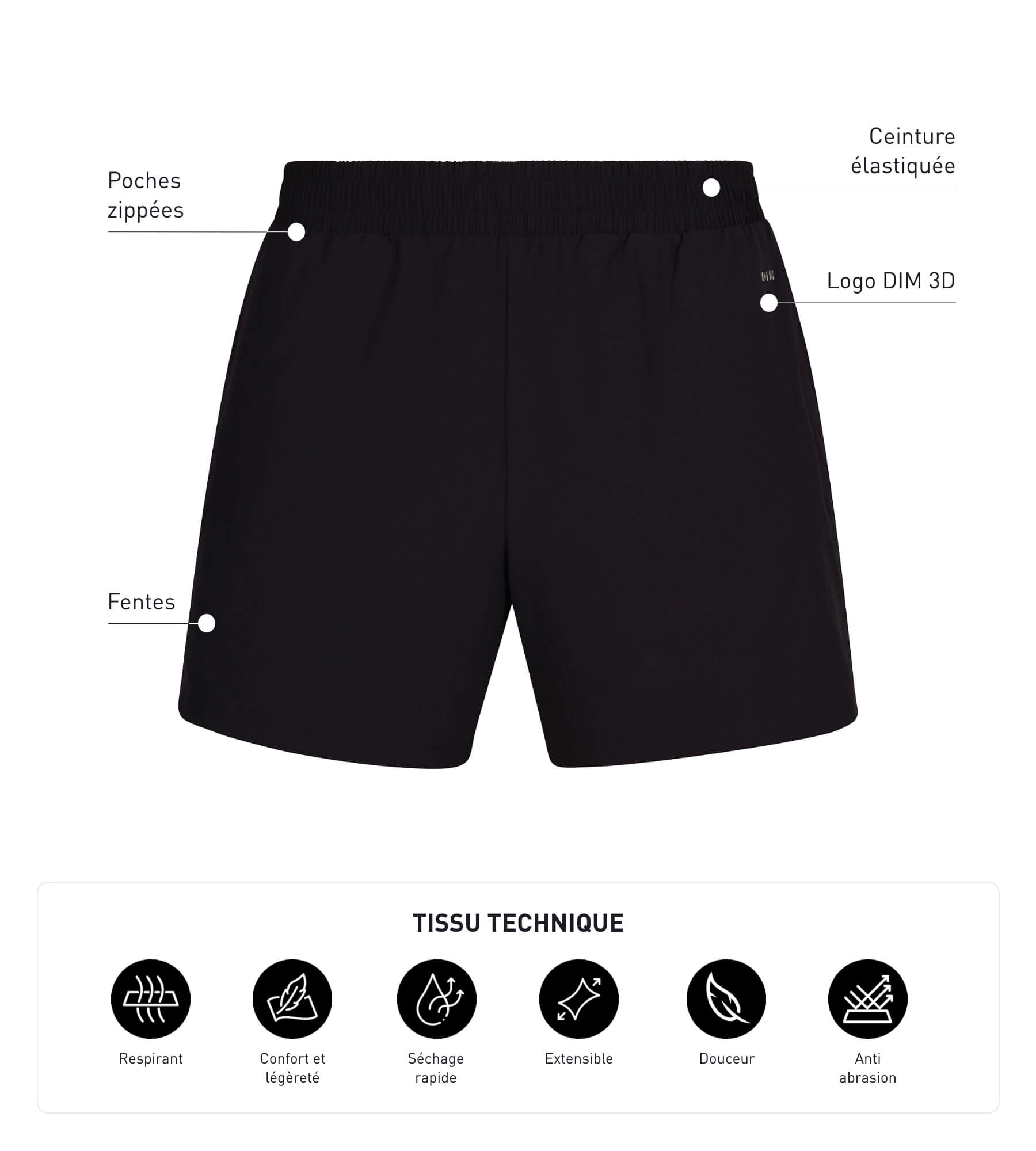 Entdecken Sie die Dim Move Herren-Sportshorts aus schwarzem, luftigem Material, Ihr Komfort- und Stil-Verbündeter bei jeder Sitzung!
