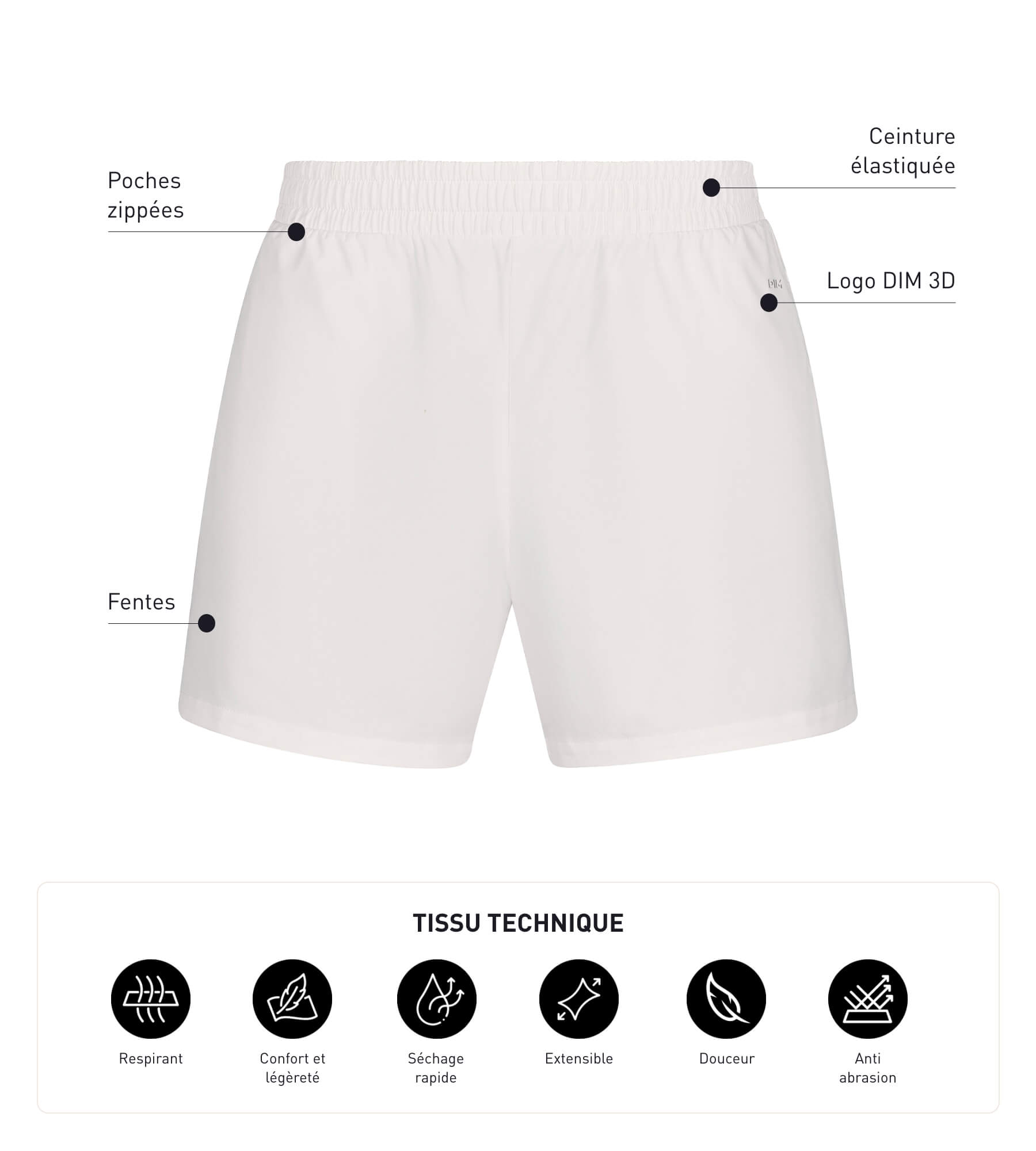 Ecru wurde für aktive Männer entwickelt, die Komfort und Leistung suchen Dim Move Sportshorts vereinen Stil und Funktionalität! Mit ihrem geraden Schnitt und dem technischen Material vermitteln die Dim Move Herrenshorts ein Gefühl von Leichtigkeit und konstanter Frische. Die Sportbekleidung von Dim Move ist mit Seitentaschen mit Reißverschluss ausgestattet und bewahrt Ihre Sachen sicher auf, damit Sie beim Training sorgenfrei trainieren können.