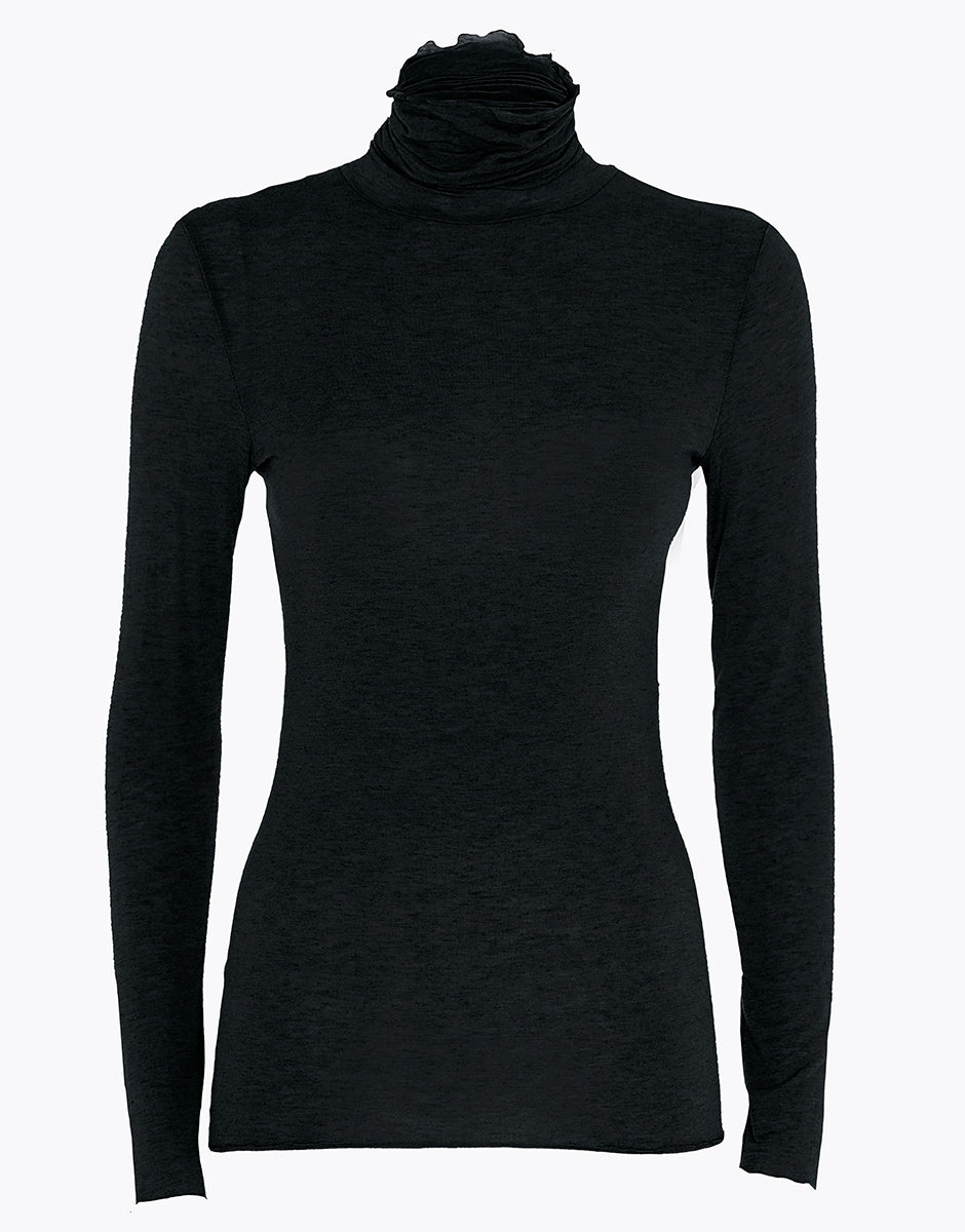 Langärmliger Stehkragenpullover aus Modal und Kaschmir Schwarz